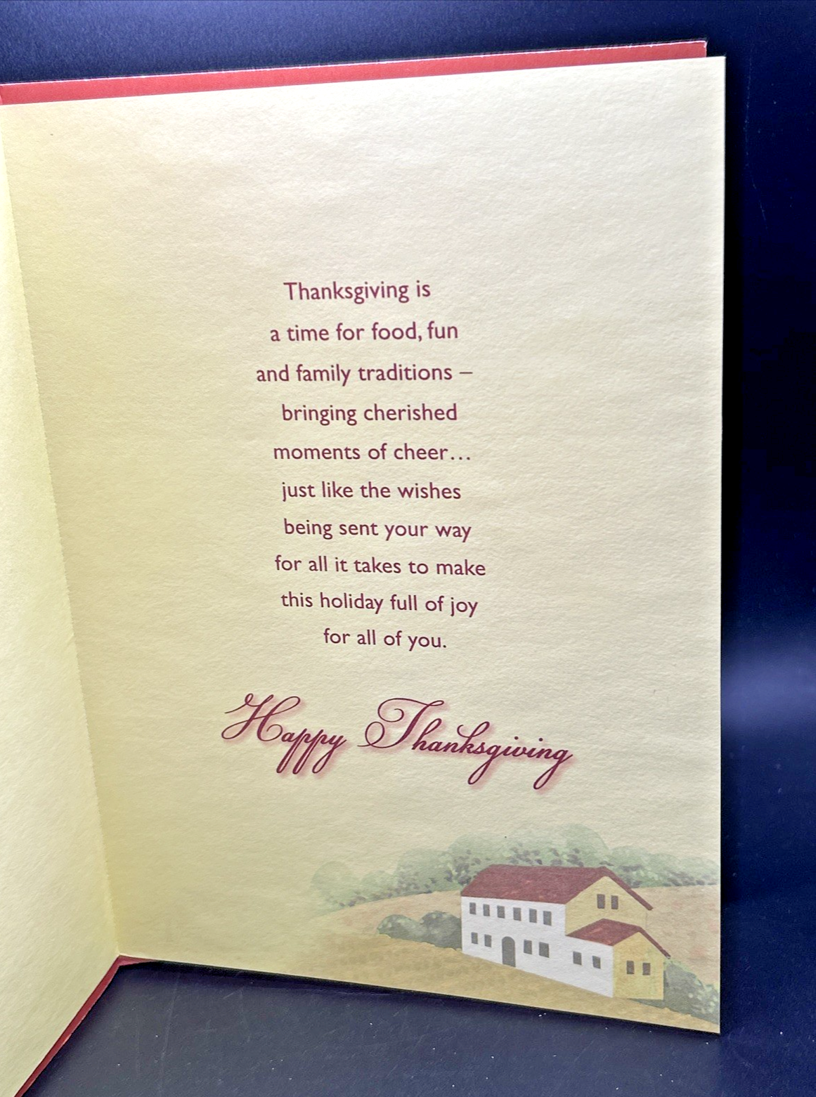 The product is a designer greeting card with the theme of Thanksgiving. It comes with an envelope for easy gifting. The brand, Designer Greetings, specializes in creating beautiful and meaningful cards for various occasions, making this a perfect choice for spreading holiday cheer during the Thanksgiving season.