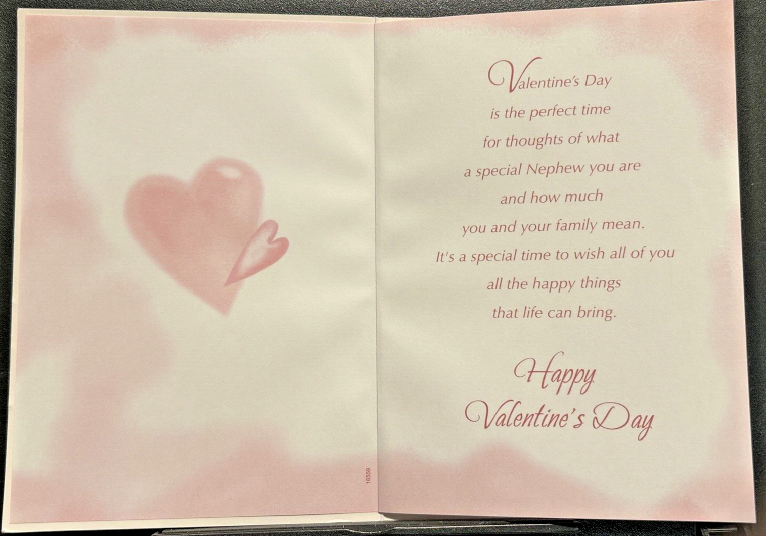 Happy Valentine's Day Nephew and Family Greeting Card w/Envelope