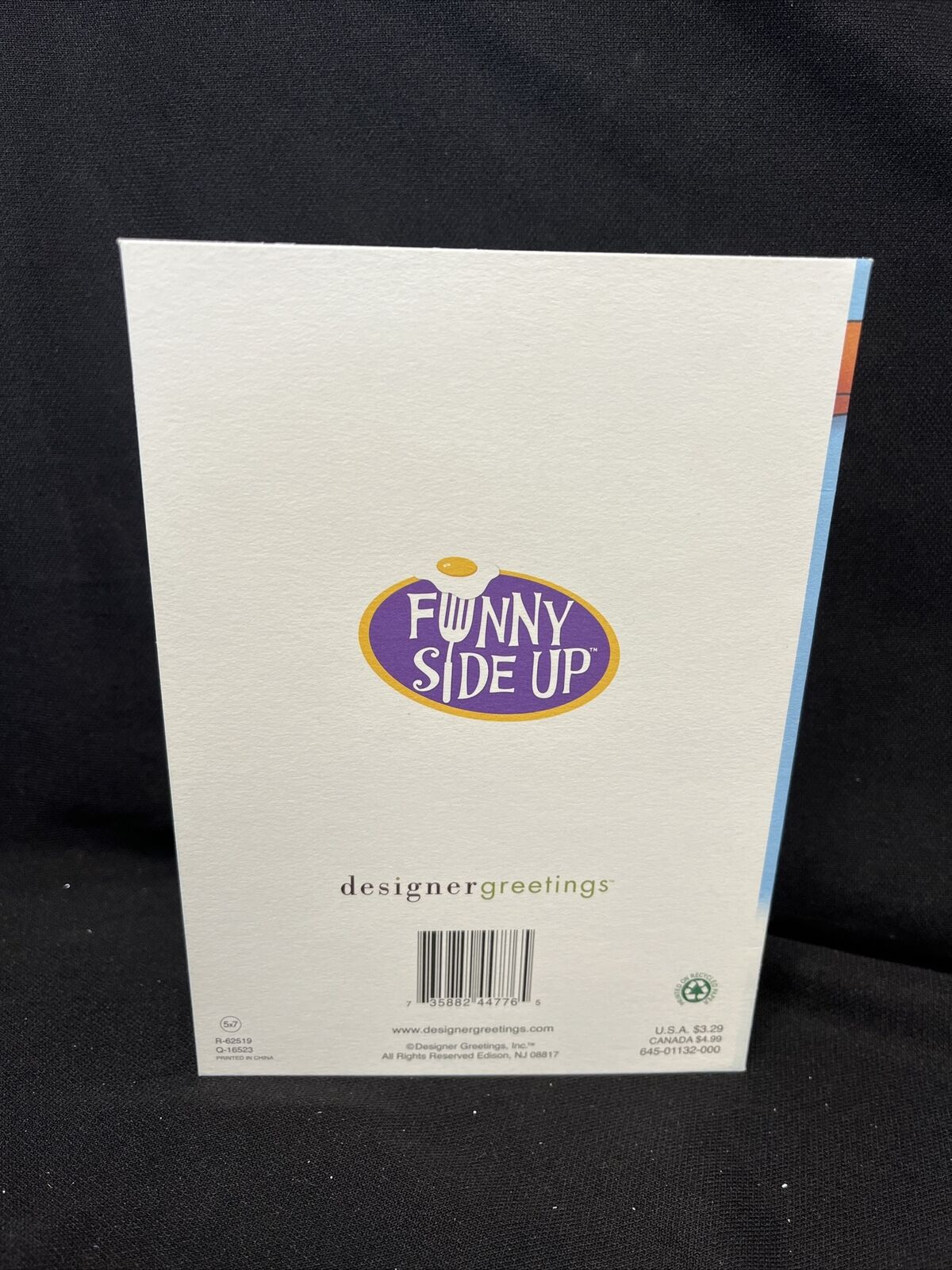 Celebrate a loved one's birthday with this humorous Designer Greetings greeting card. The front of the card features a comical design that is sure to bring a smile to the recipient's face. The card comes with an envelope for easy mailing and is perfect for anyone who appreciates a good laugh on their special day.
