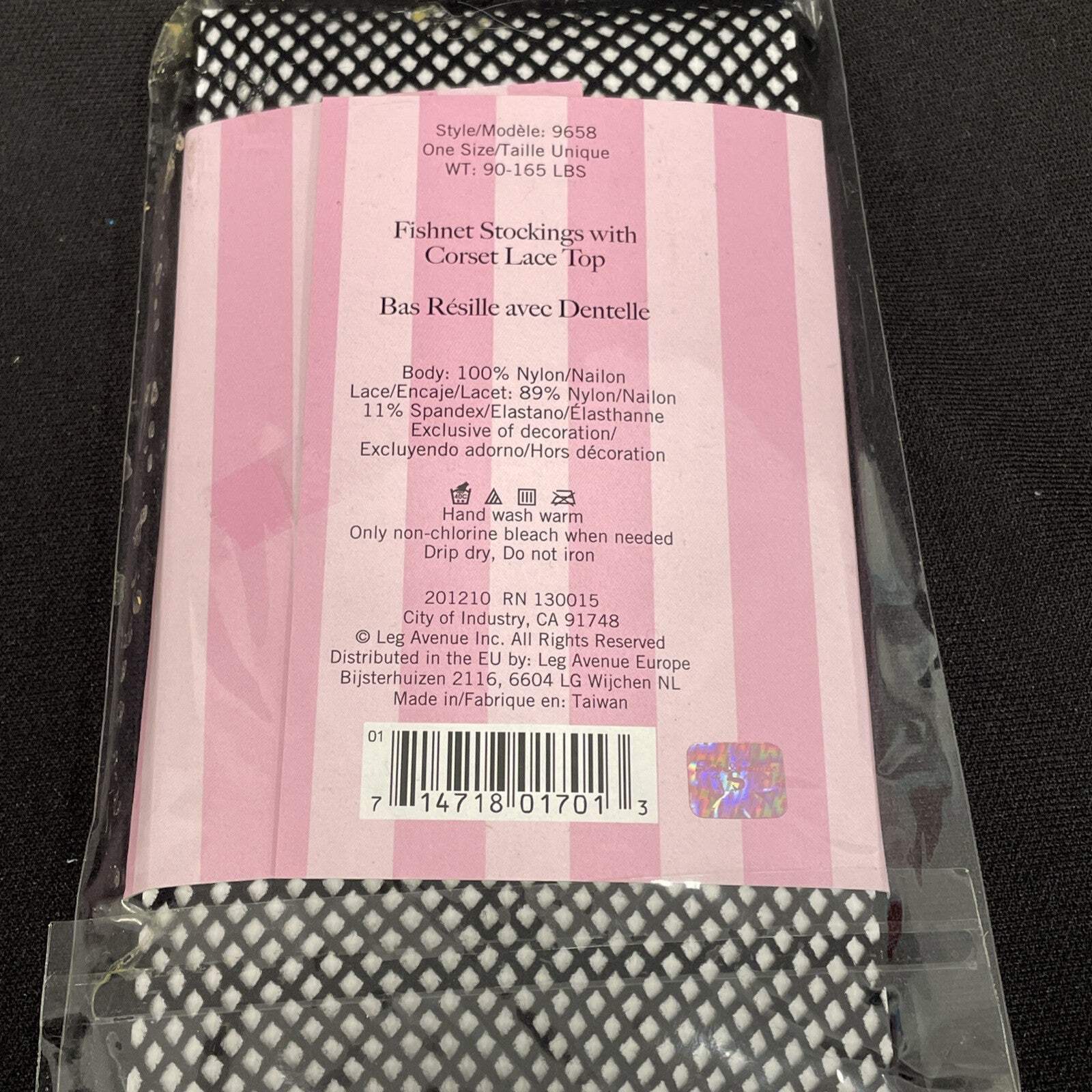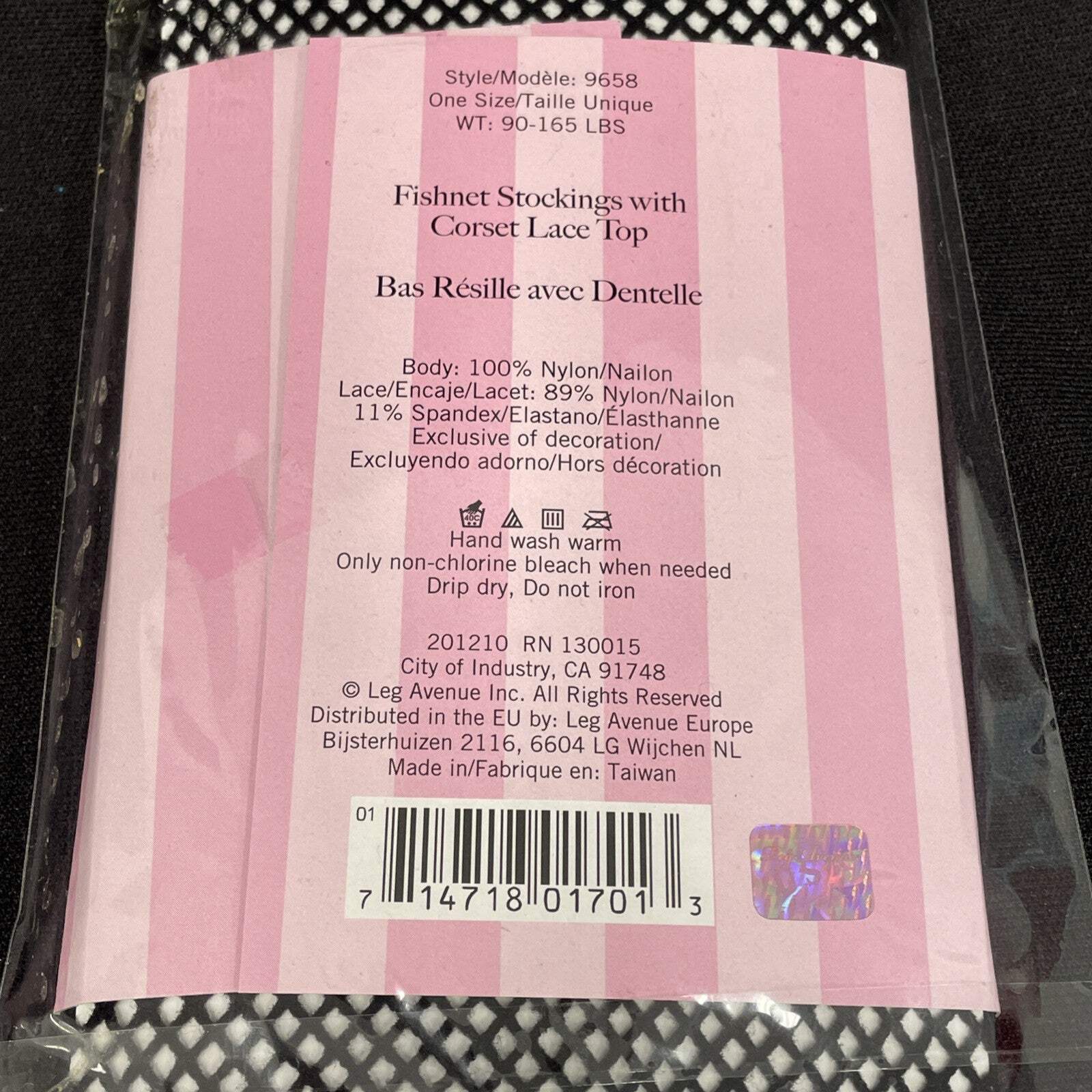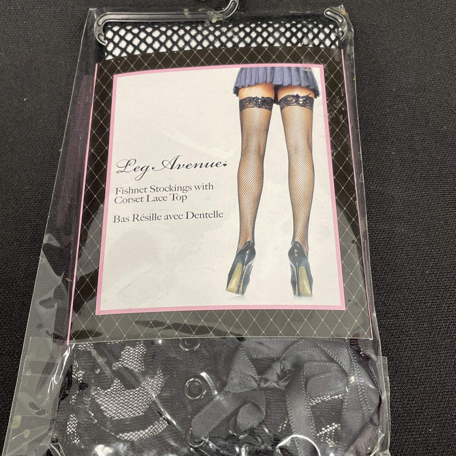 Fishnet stockings with corset lace top. One Size fits most 90-160 lbs