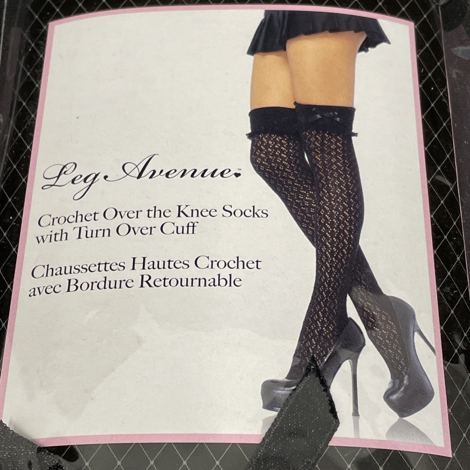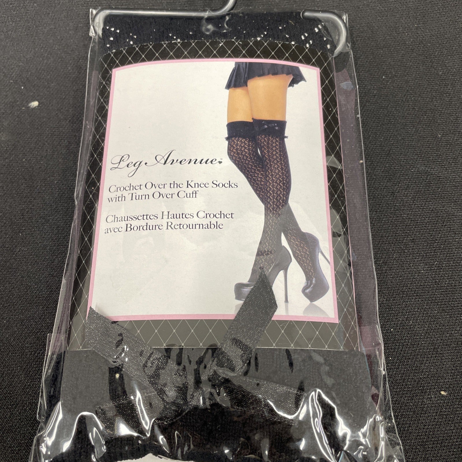 Leg Avenue Crocheted Black Over the Knee W/Turn Over Cuff Socks OS (90165 lbs)