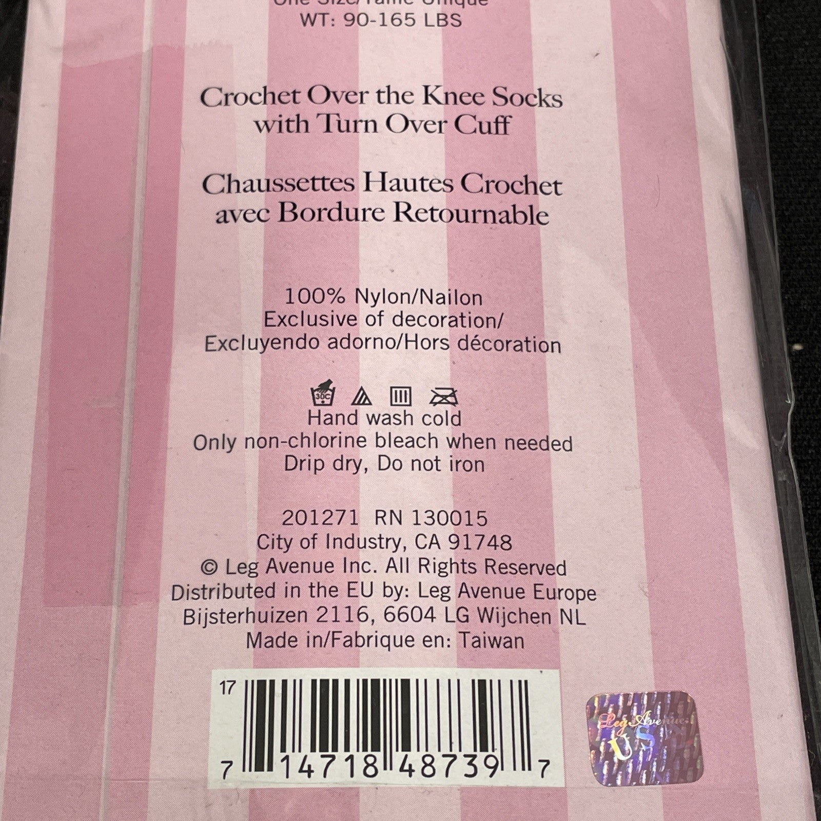 The product is a pair of crocheted black over the knee socks with a turn-over cuff from Leg Avenue. Designed specifically for women in one size, these stylish socks feature a length that covers the knee, offering a trendy and fashionable look. The black color adds a versatile touch to any outfit, making these socks a chic addition to any wardrobe.
