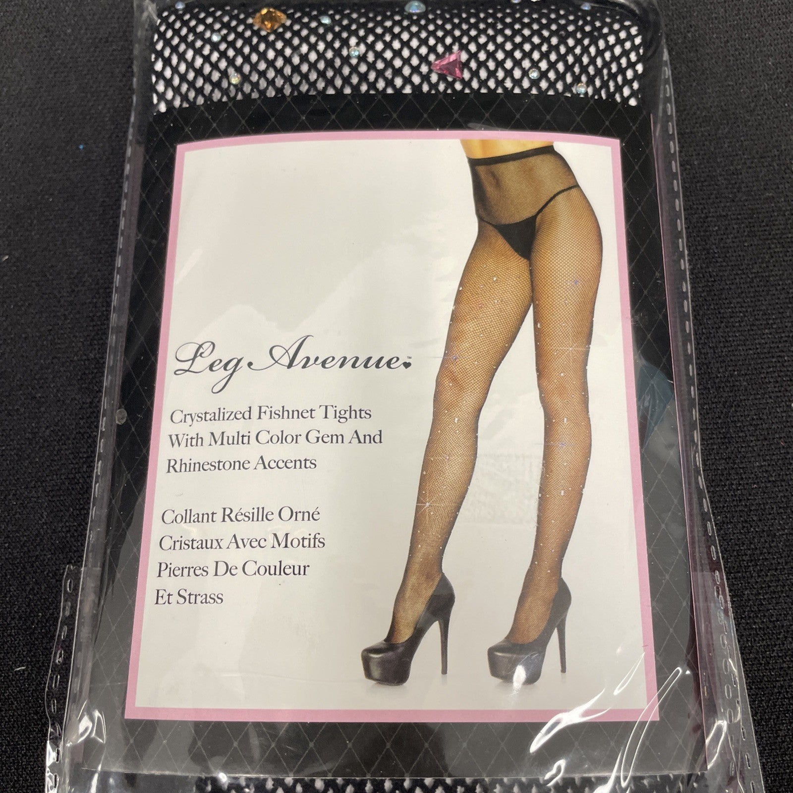 Leg Avenue Crystalized Black Fishnet Tights Multi Color Gem & Rhinestone O/S