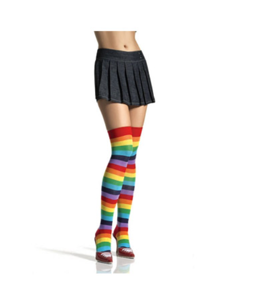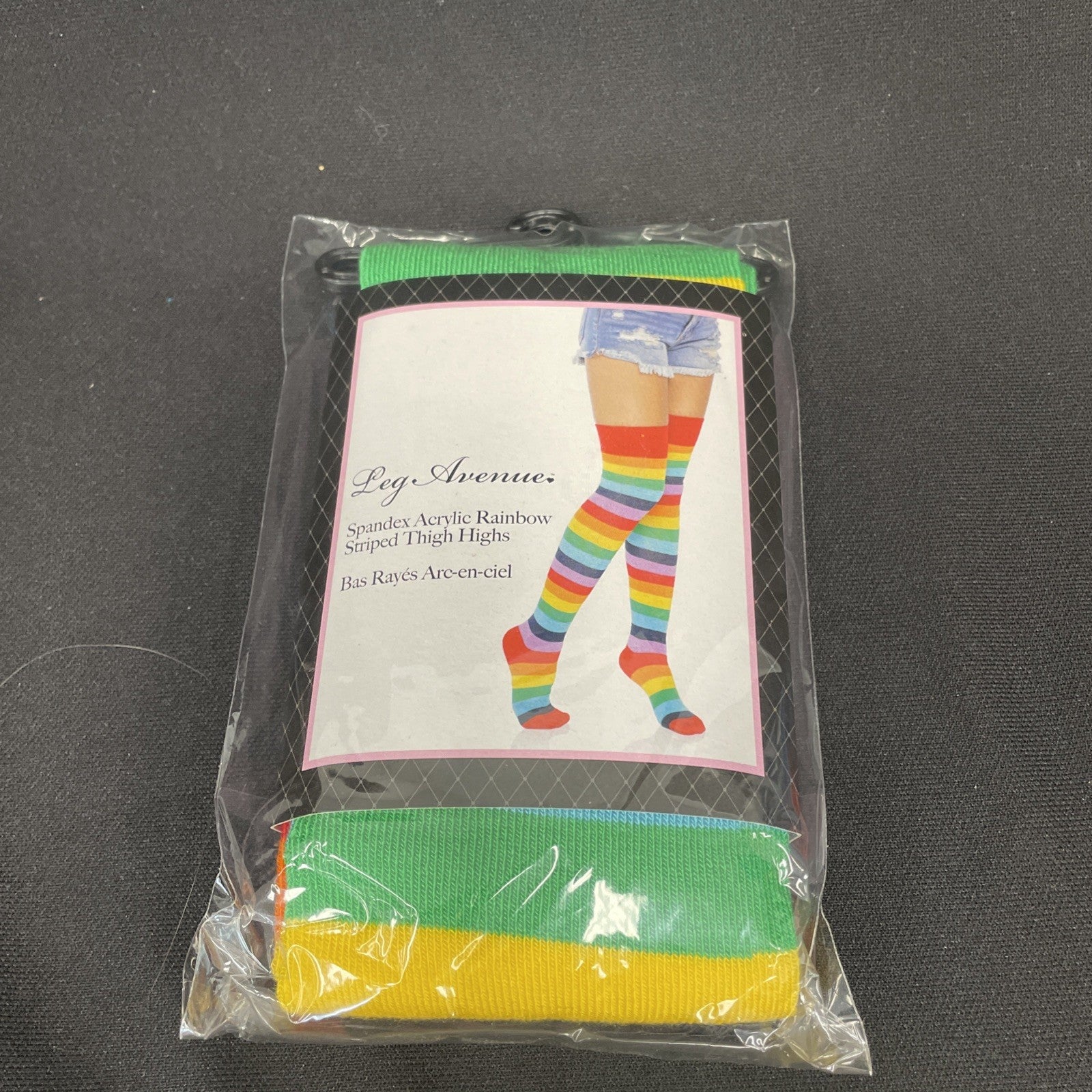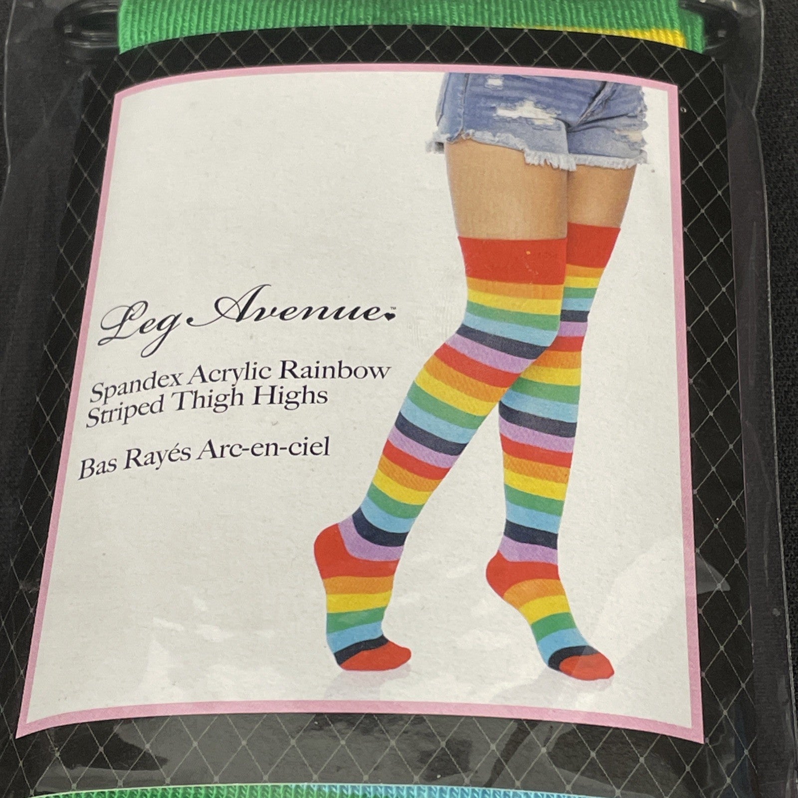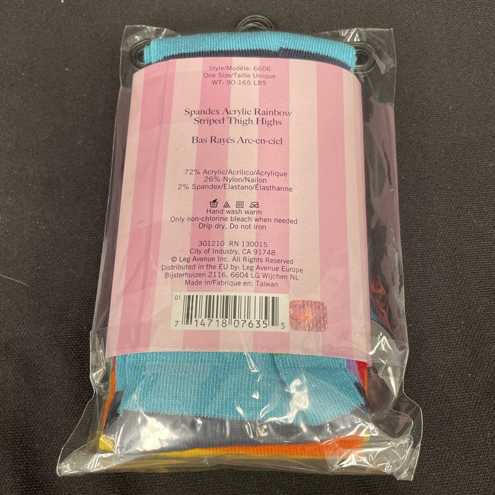 Leg Avenue Hold-up Striped Thigh High Stockings Rainbow Colors O/S (90-165 lbs)