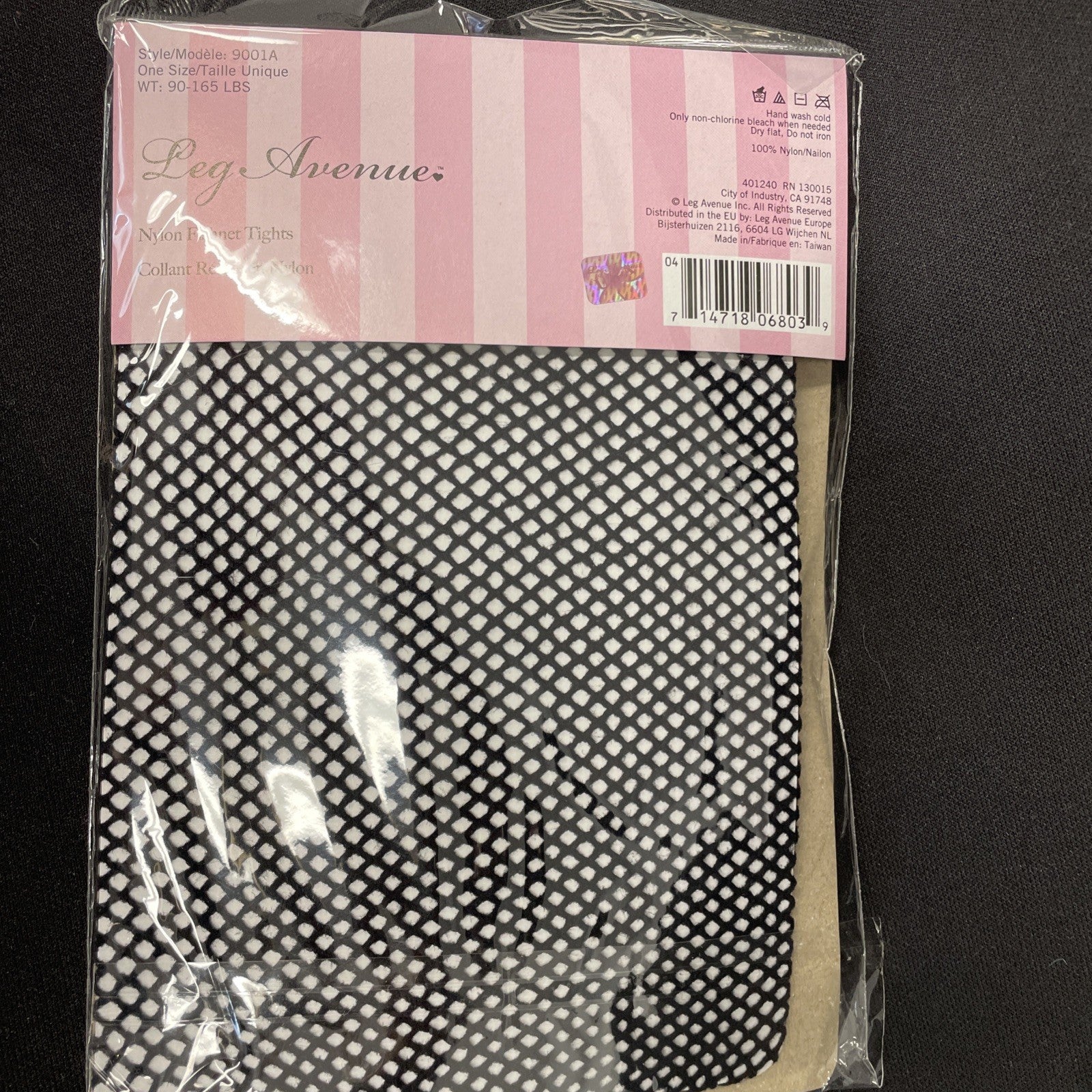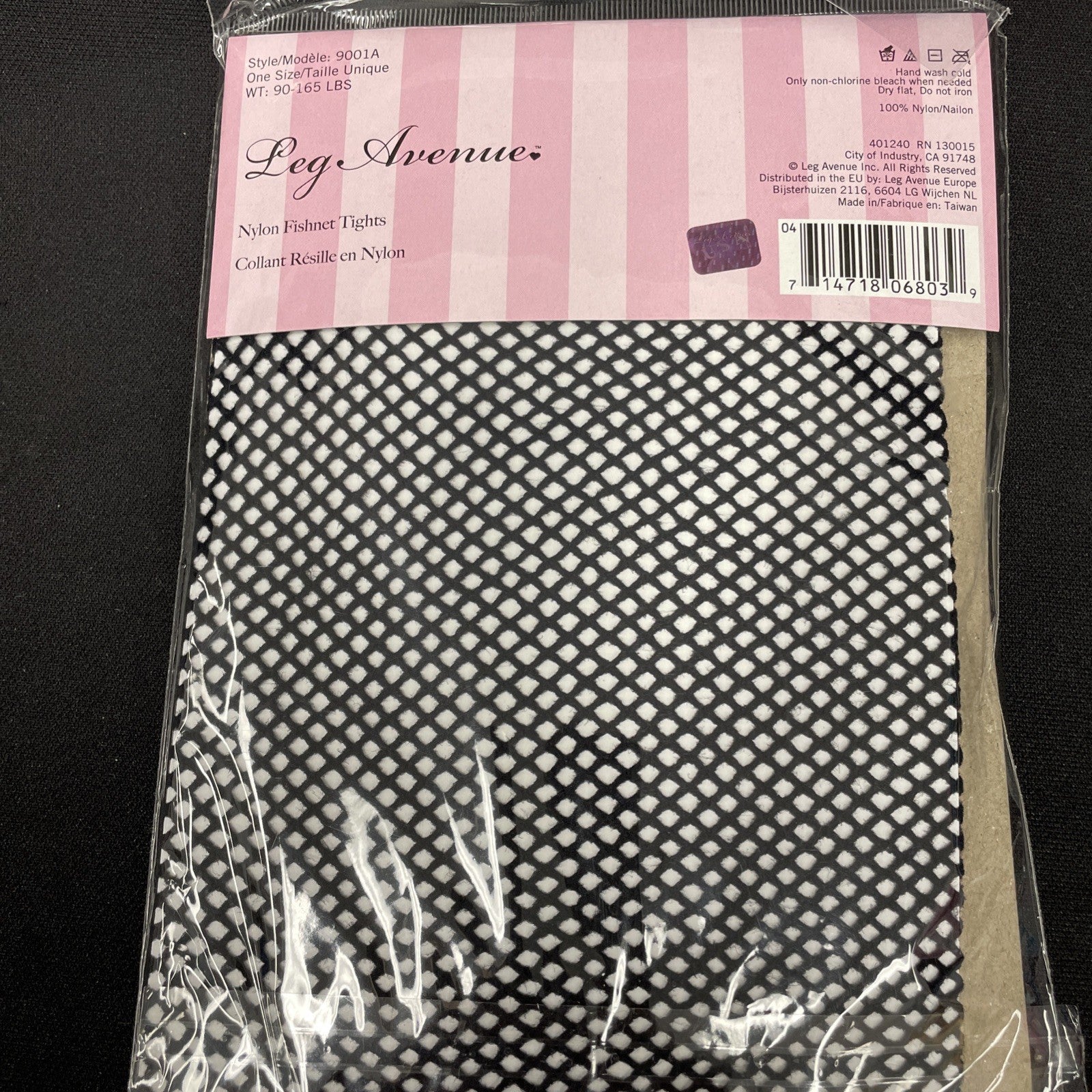 LEG AVENUE Nylon Black Fishnet Pantyhose One Size WT 90160 Style 9001A