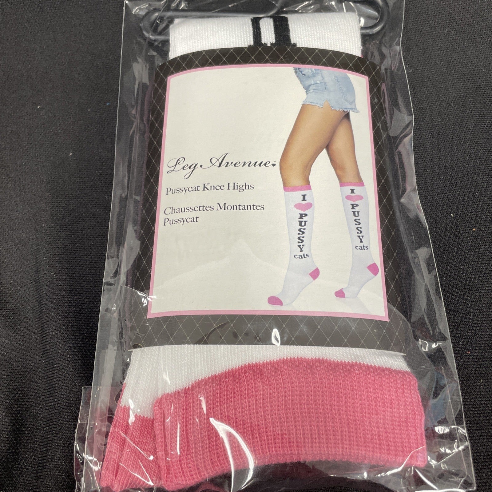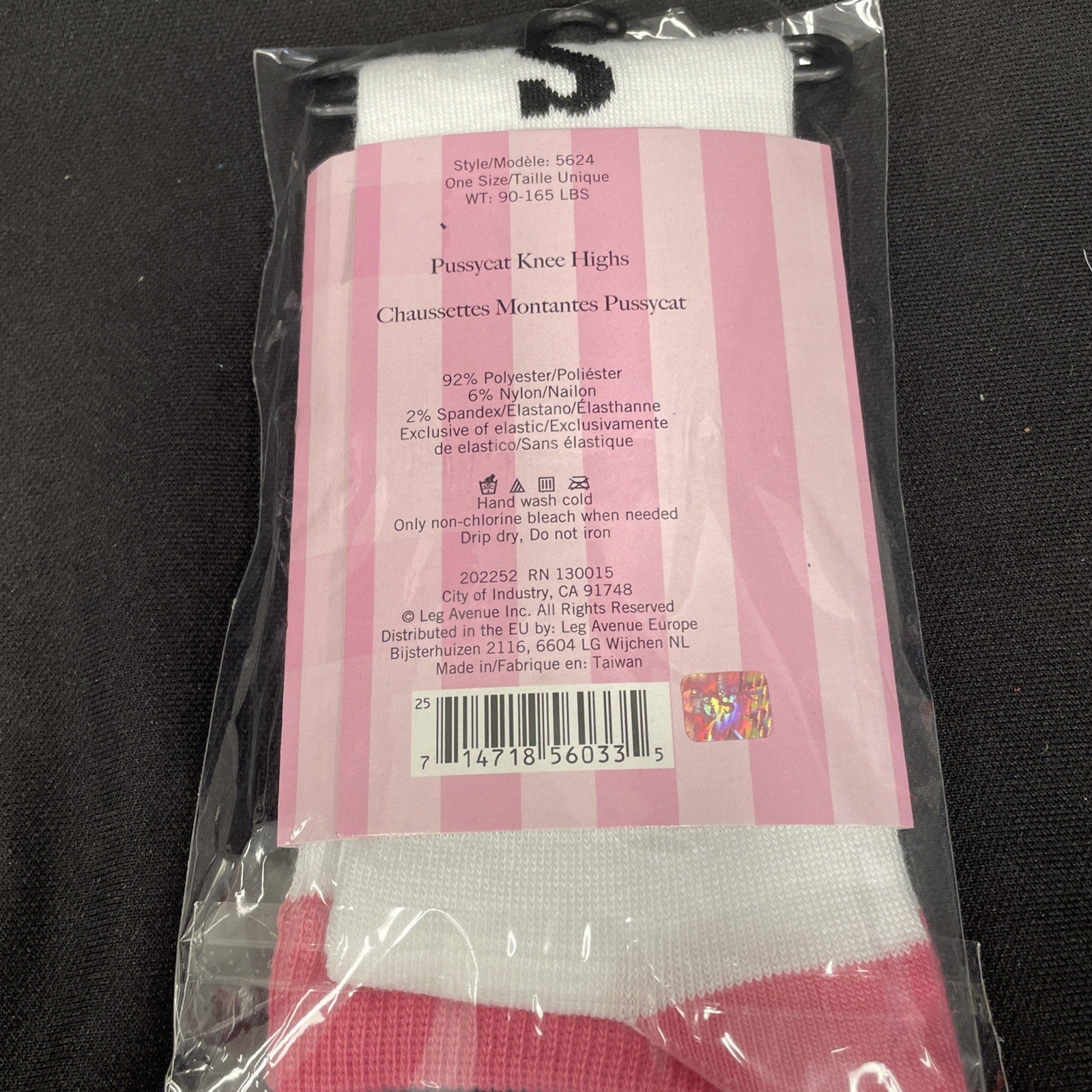 Leg Avenue P*ssycat Knee Highs O/S White/pink O/S (90-165 lbs)