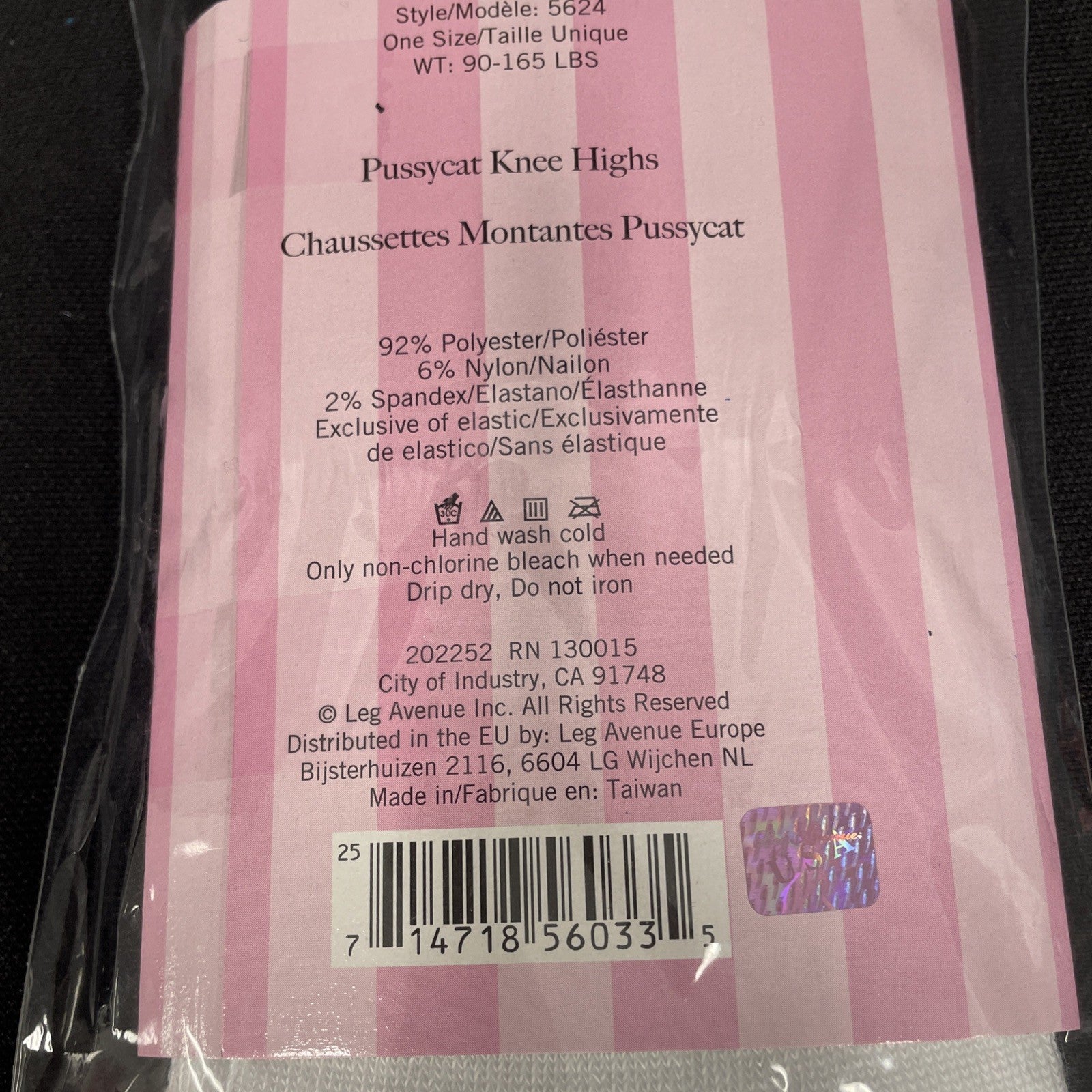 The P*ssycat Knee Highs by Leg Avenue Inc. are a playful and feminine addition to any lingerie collection. These knee-high stockings come in a classic white and pink color scheme, adding a touch of sweetness to your wardrobe. Perfect for a special occasion or to spice up a casual outfit, these thigh-highs are a fun and flirtatious choice for any fashion-forward individual looking to make a statement.