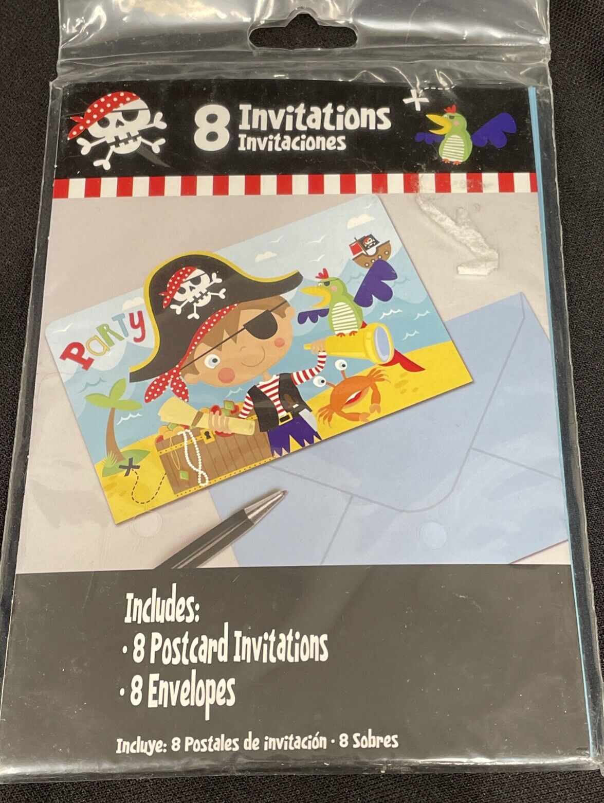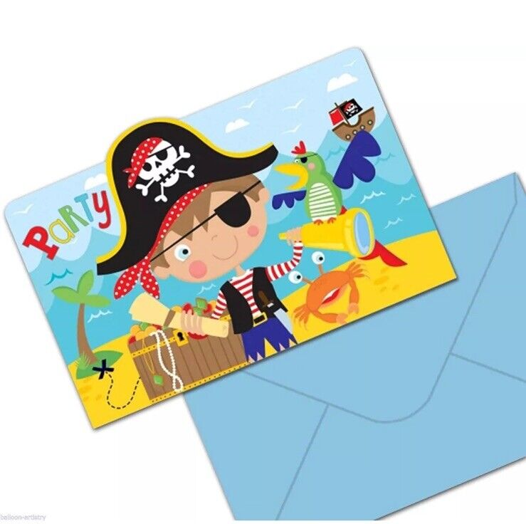 Little Pirate Caribbean Buccaneer Kids Birthday Party Invitations w/Envelopes