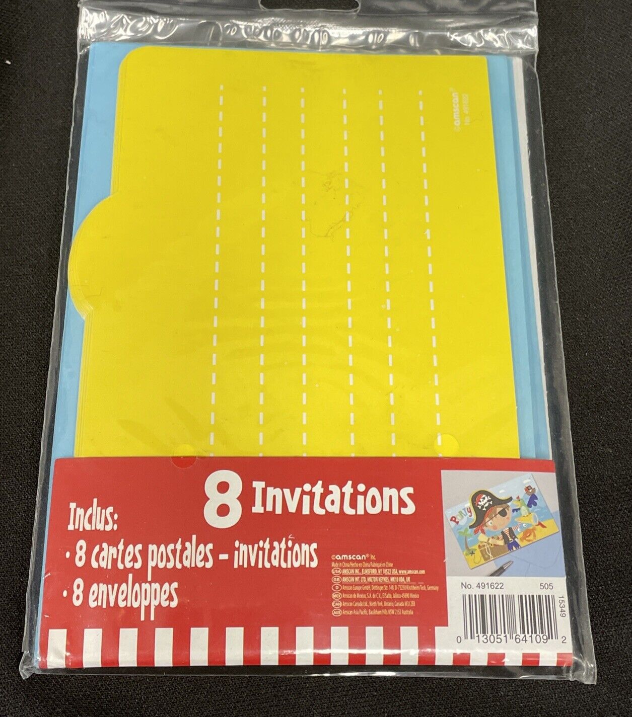 These Amscan invitations are designed for a child's birthday party with a Pirate theme. The colorful design features a Little Pirate Caribbean Buccaneer theme, perfect for a kid's celebration. Each invitation comes with envelopes for easy mailing. Ideal for inviting guests to a fun and adventurous pirate-themed birthday party.