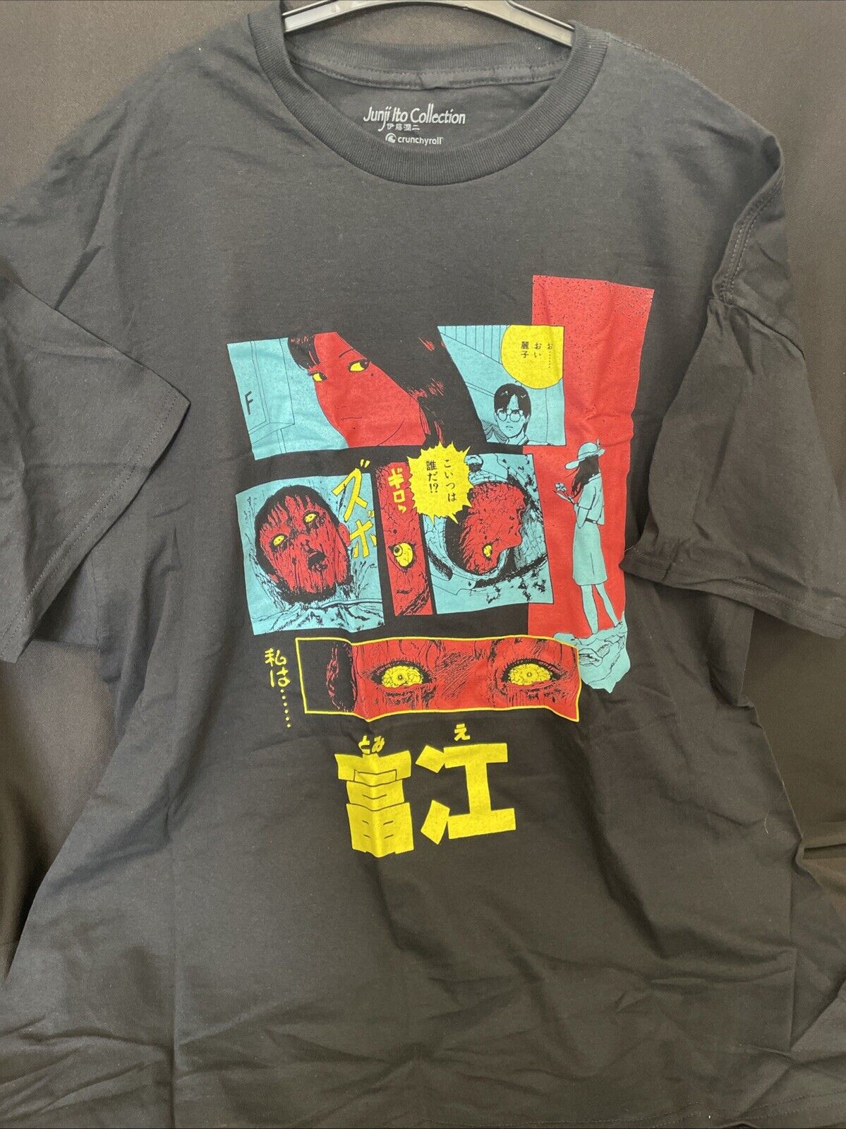 This is a men's 2XL black T-shirt from the Loot Crate Jinji Ito Collection, featuring short sleeves and a regular fit. The shirt is part of a collaboration with the Jinji Ito character family, known for its horror manga and art. Perfect for fans of Jinji Ito's work, this T-shirt provides a stylish way to showcase appreciation for the iconic creator.