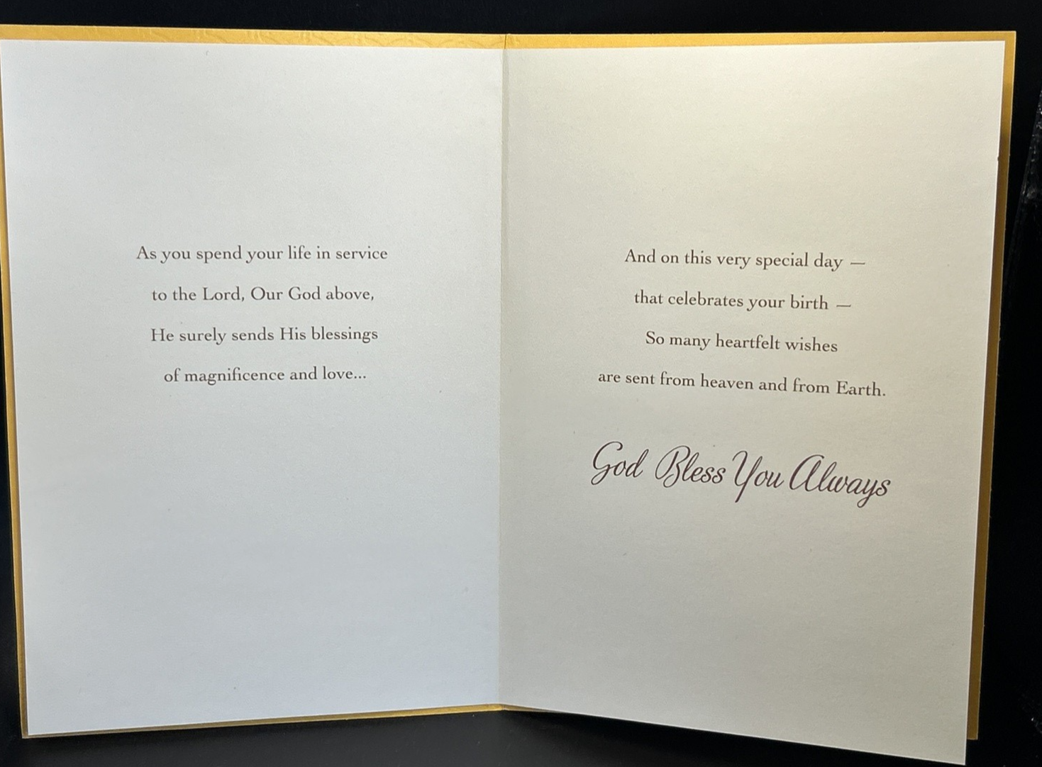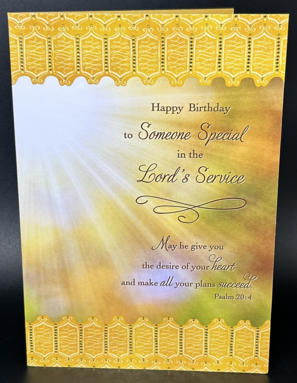 The Lord's Service Birthday Greeting Card by Designer Greetings is a beautifully designed greeting card perfect for celebrating a special birthday. The card includes an envelope for easy gifting and features a thoughtful message specific to the occasion. This religiously-themed card is sure to bring joy and warmth to anyone receiving it on their birthday.