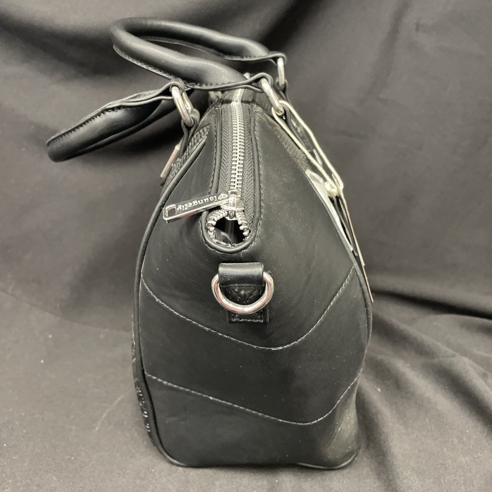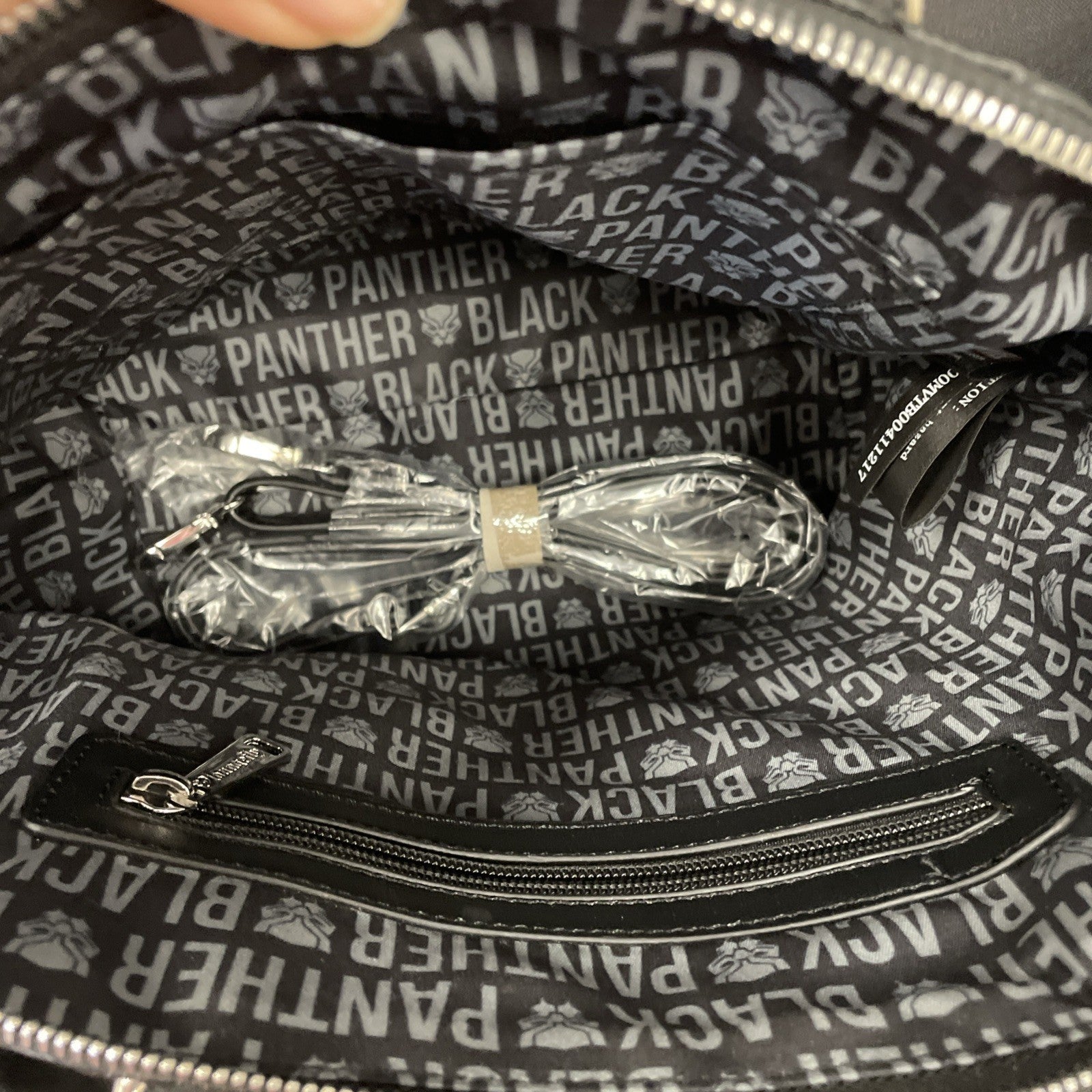 The Loungefly x Black Panther Cosplay Crossbody Handbag is a stylish and practical accessory for women who are fans of the Black Panther character from Marvel Comics. Made of faux leather with a solid black exterior and silver hardware, this medium-sized handbag features a zipper closure and a satchel style with a crossbody strap for easy carrying.