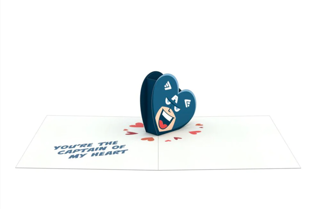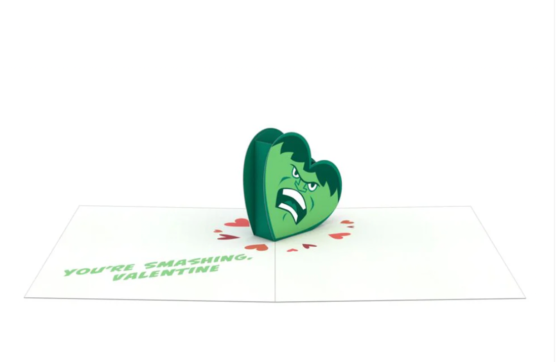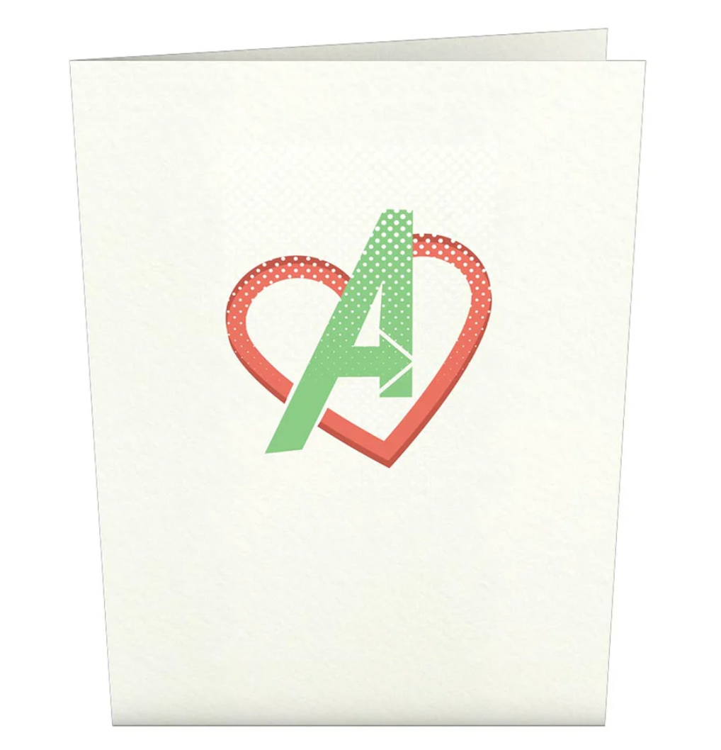 Valentines Assemble! You're sure to have a super-charged Valentine's Day with this 4-pack of notecards, featuring heart-shaped renditions of Black Panther, Iron Man, Hulk, and Captain America.