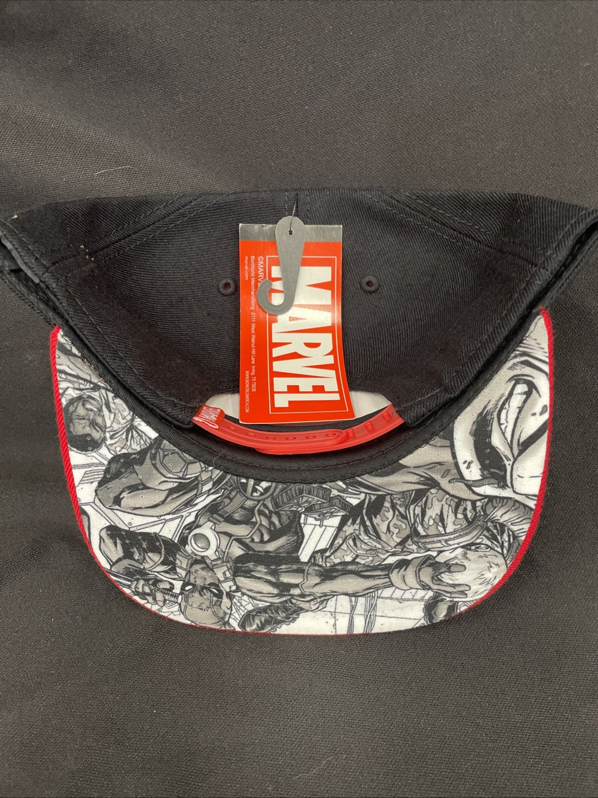 Marvel Deadpool SnapBack Adult Black Cap w/Red Brim & Graphics