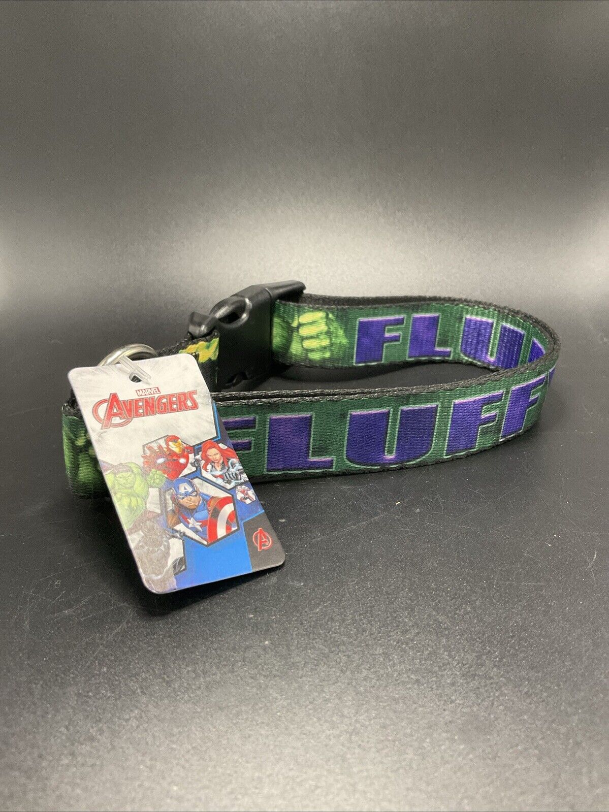 Elevate your furry friend's style with this Marvel Plastic Clip Pet Collar. The collar is customized with the beloved character "Fluffy" and is made of durable plastic belt material. It is suitable for dogs with a neck size of 15"-26" and is 1" wide.