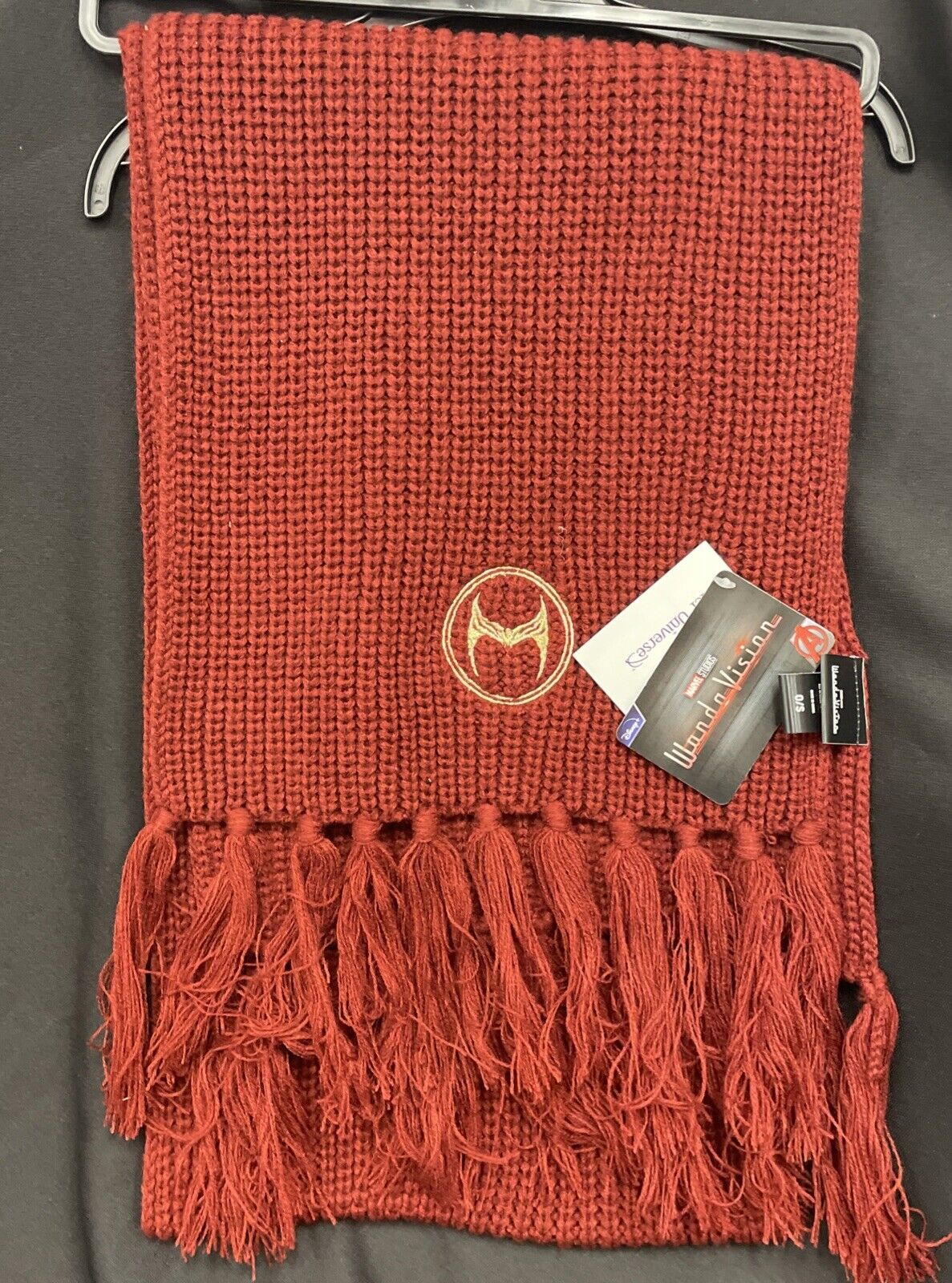 Stay cozy while studying the Darkhold with this super soft scarf! From Marvel, this knit scarf is inspired by Scarlet Witch, featuring her tiara embroidered at the ends, plus a fringed trim.