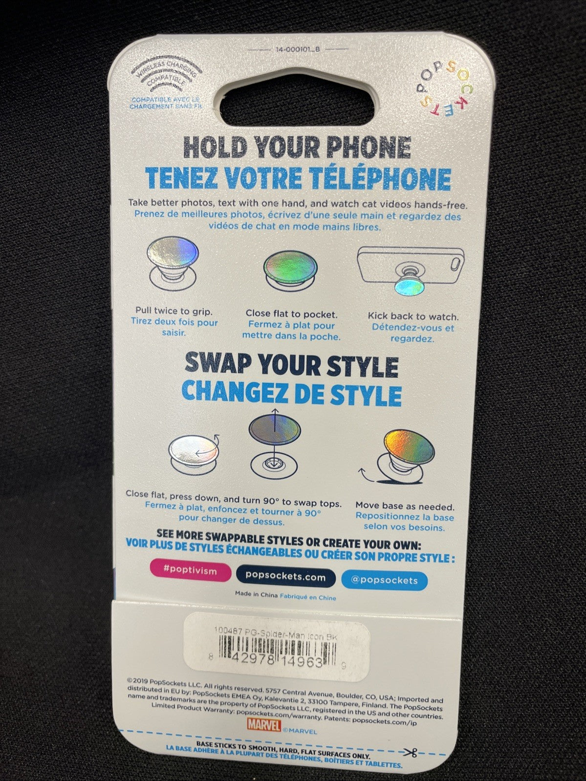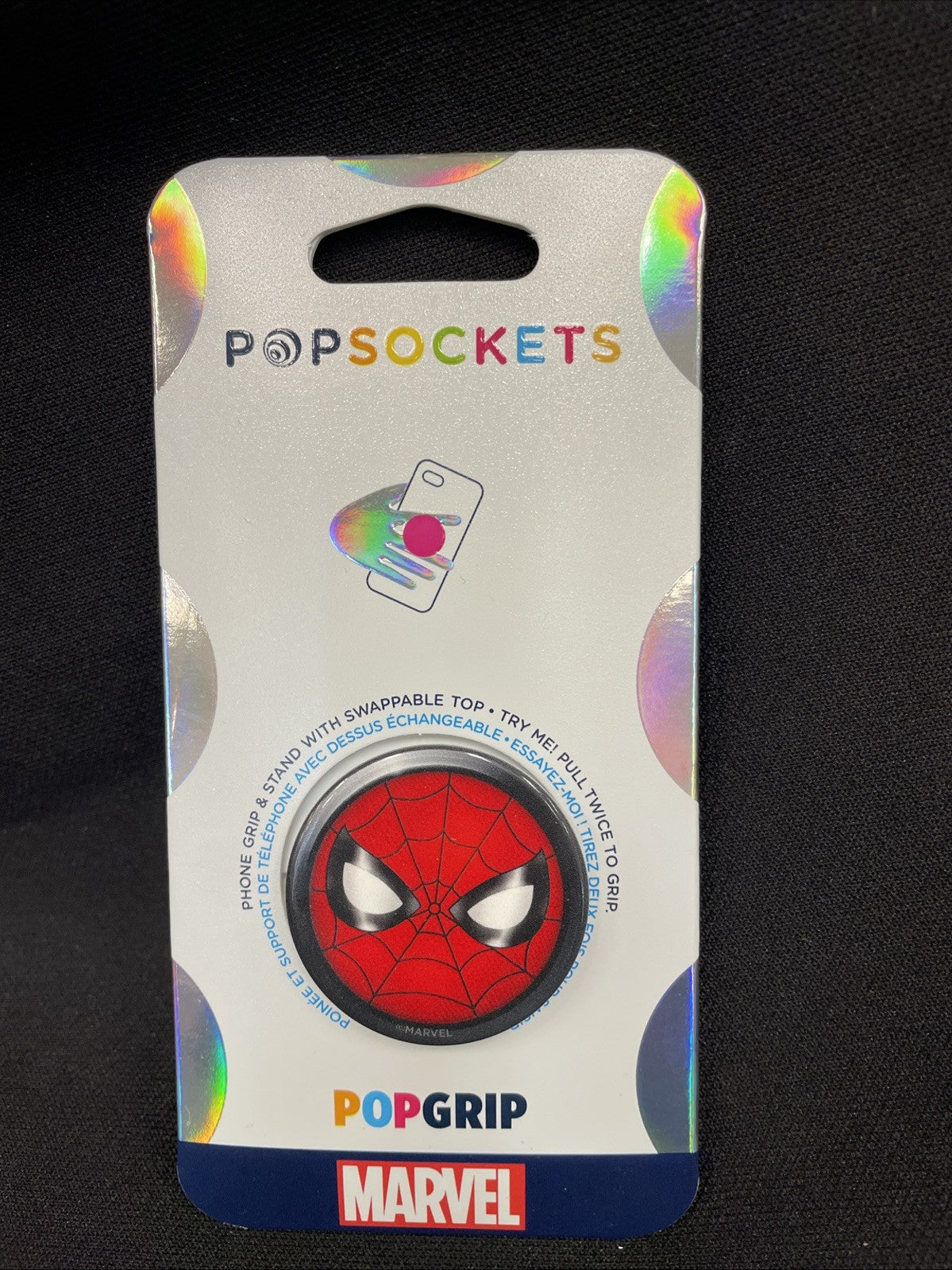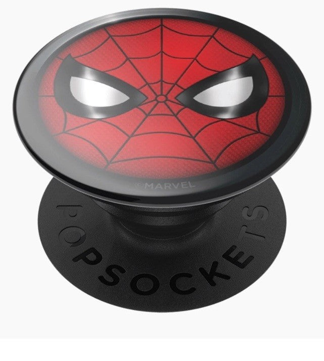 Marvel Spiderman Icon in Glossy Print Spiderman Red Icon Phone Grip PopSockets PopGrip Easily swap the top to change your style. Wireless charging made possible with easy removal of the PopTop. Offers a secure grip so you can text with one hand, snap better photos, and watch dog videos hands-free. Functions as a convenient stand so you can watch videos on the fly. Repositionable and sticks to most devices and cases. Allows for hands-free use with the PopMounts. Compatible with all mounts sold today. Dimensions: 38.8 mm diameter x 7.7 mm H and 24.3 mm H expanded.