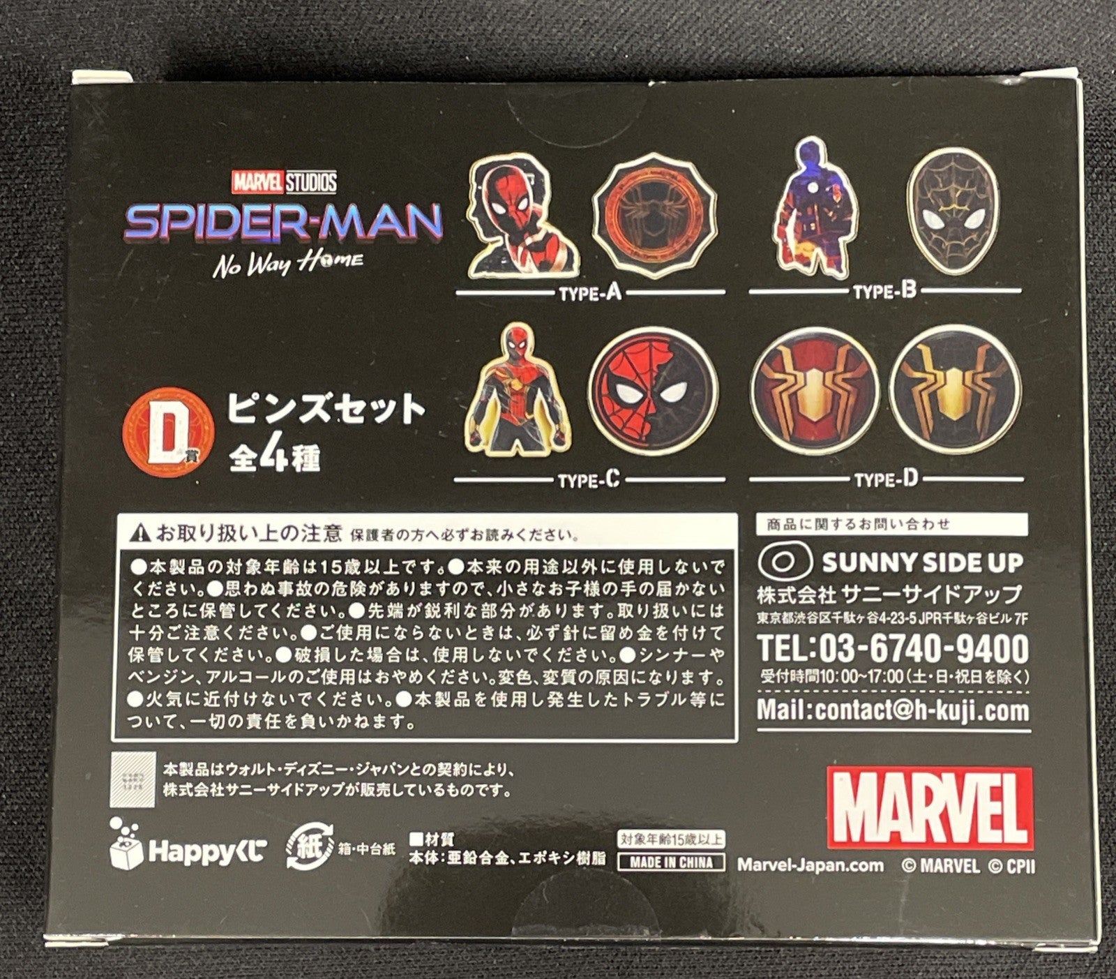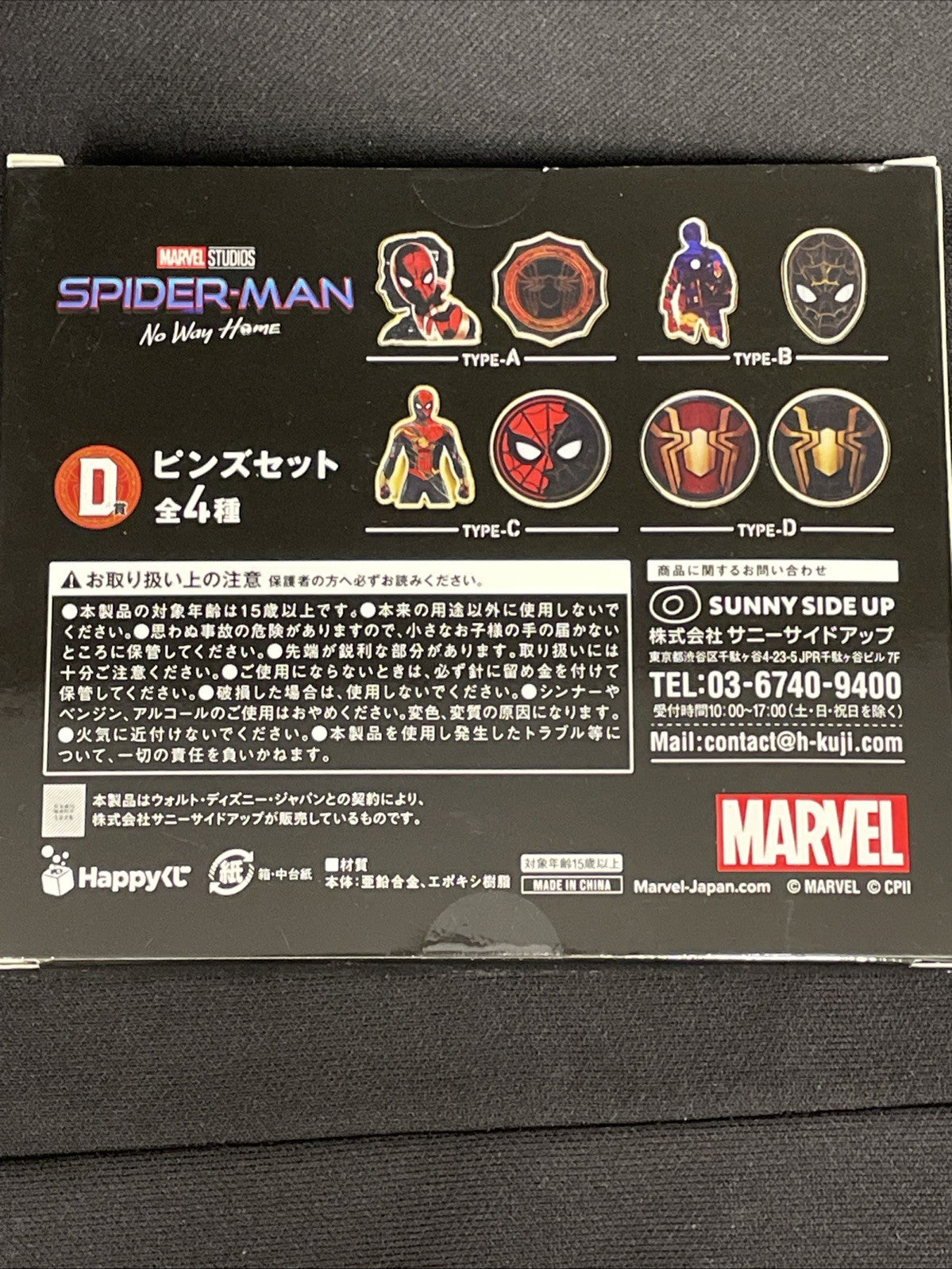 The Marvel Spider-Man No Way Home Prize Pin Set Sunny Side Up Type A is a collectible pin set featuring the popular character Spider-Man from the movie Spider-Man: No Way Home. This set is part of the Happy Kuji series and is themed around comic books and cartoons. Made in China, these pins are a must-have for fans of the Marvel Cinematic Universe and collectors of Spider-Man memorabilia. With its unique Sunny Side Up branding, this pin set is a standout addition to any collection.