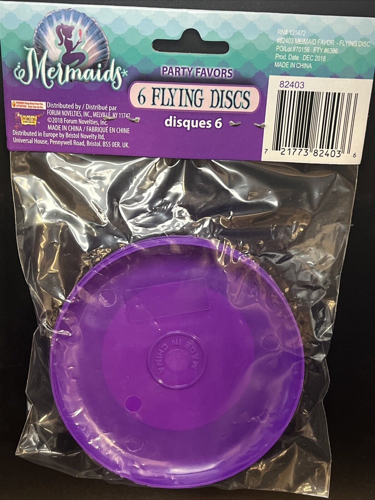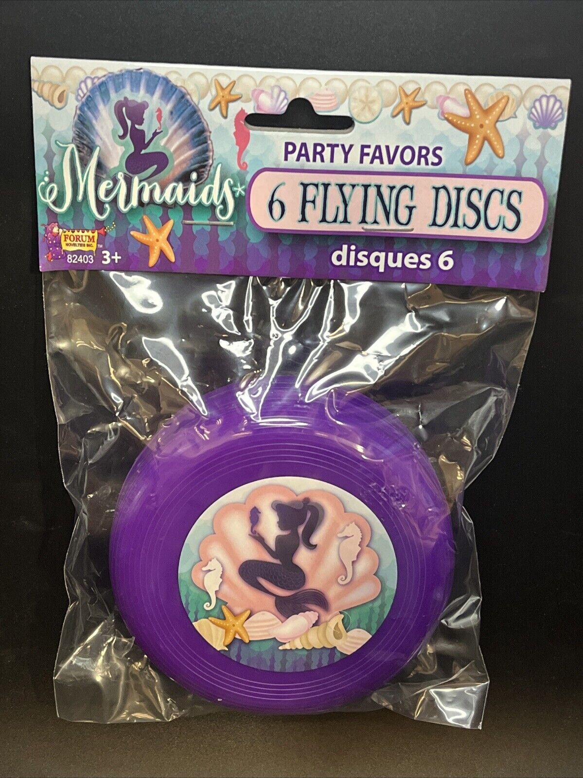 The Mermaids Pack of 6 Flying Discs by Forum Novelties is a party favor set perfect for a girls' party with a mermaid theme. These discs add a fun touch to the occasion. Great for outdoor play and party entertainment from any mermaid themed party.