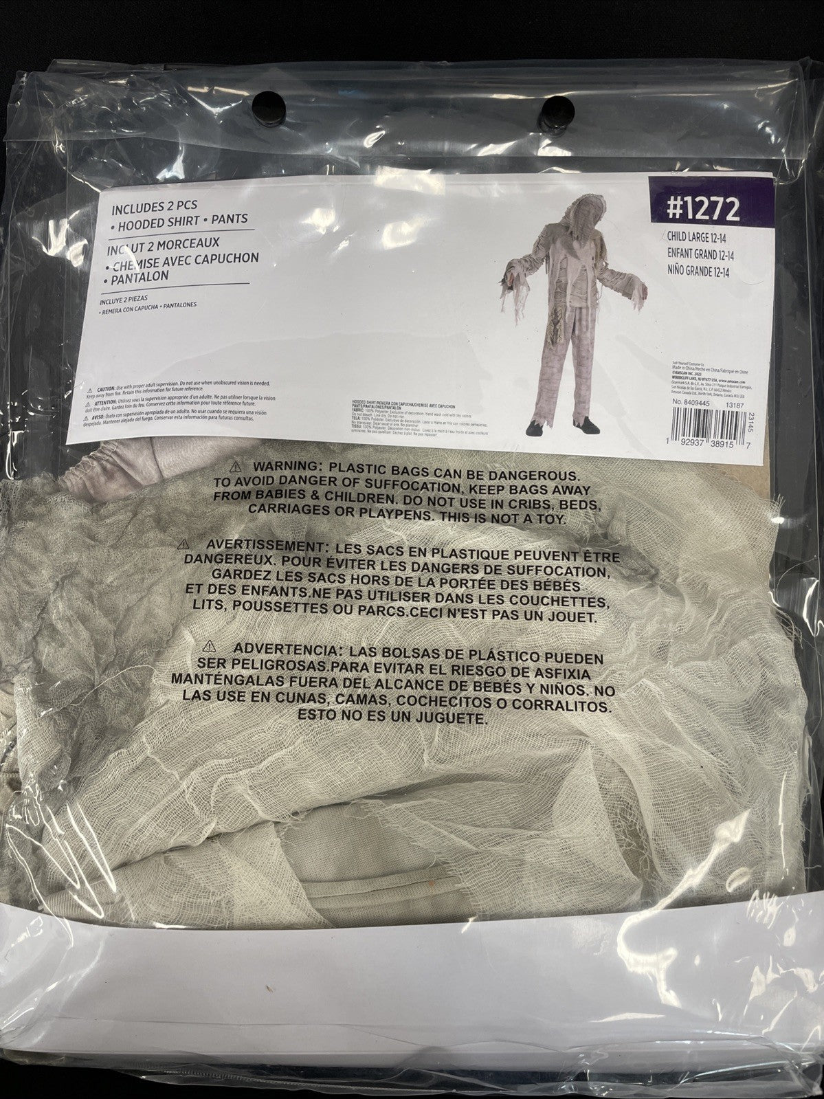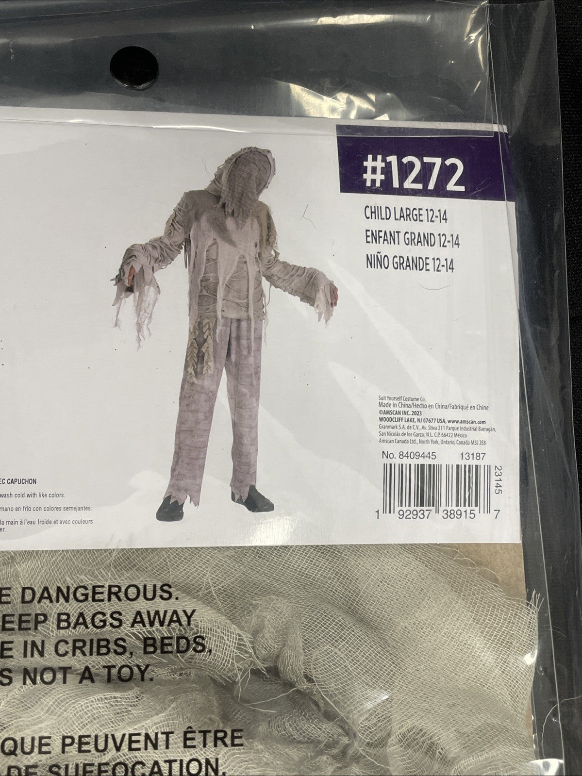 The Mummified Mummy Ghost Scary Suit Halloween Child Costume by Amscan is a must-have for little ones looking to dress up in style on Halloween. This large size costume features a gray color and a Ghosts & Monsters theme, perfect for creating a spooky and fun atmosphere. Made of durable polyester material, this complete outfit is sure to make your child stand out at any Halloween party or costume event. Just remember to suit yourself up and have a ghouly good time!