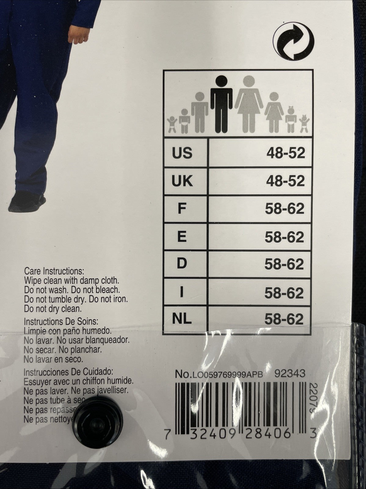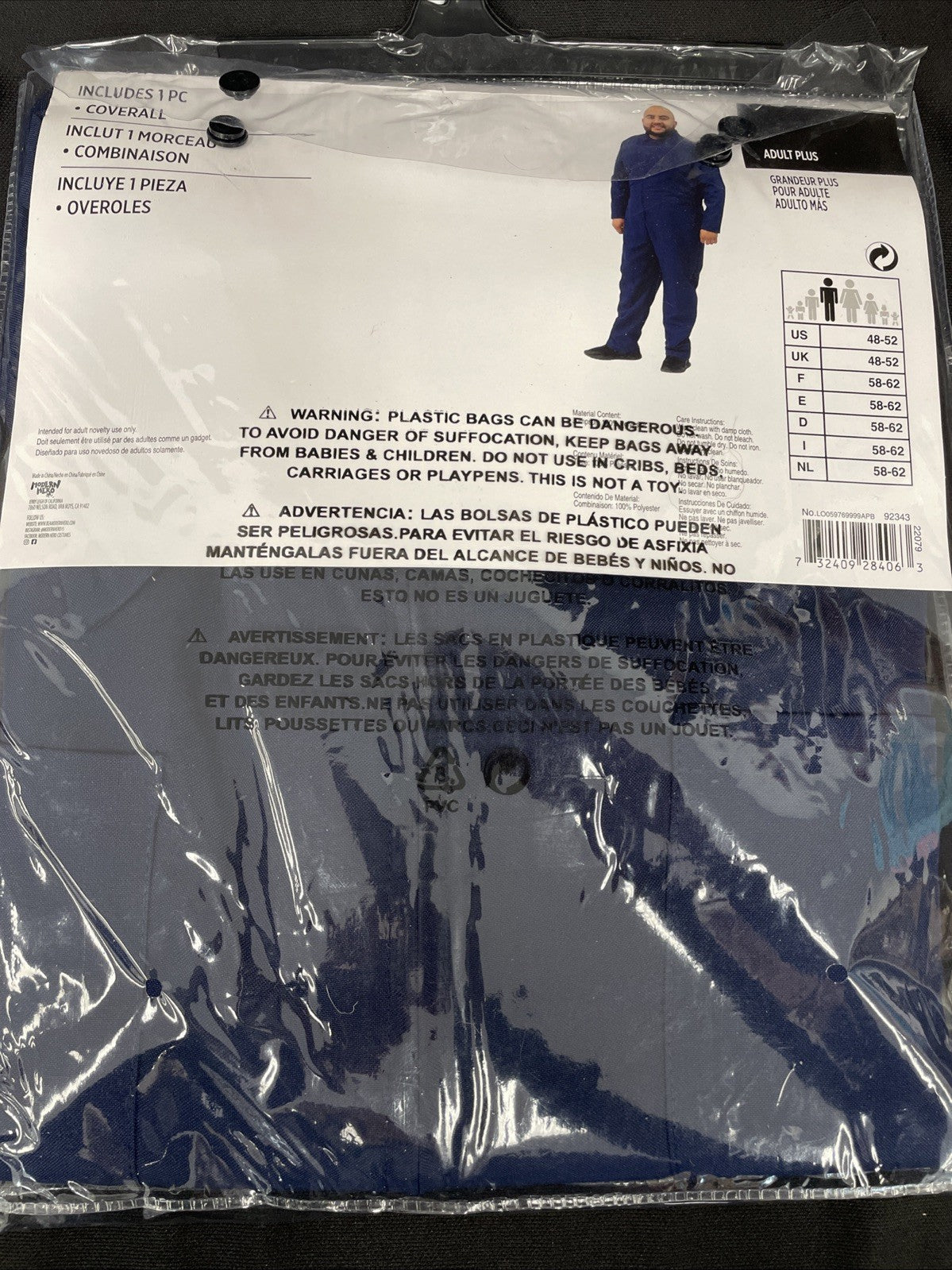 Navy Blue Killer Coveralls Costume Adult Plus XXL 48-52
