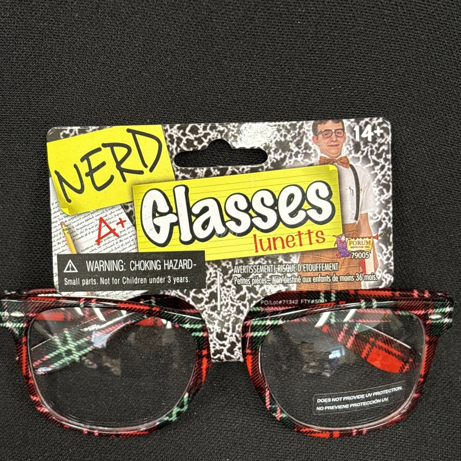 Nerd Glasses 50's Class Plaid Fancy Dress Halloween Adult Costume Accessory