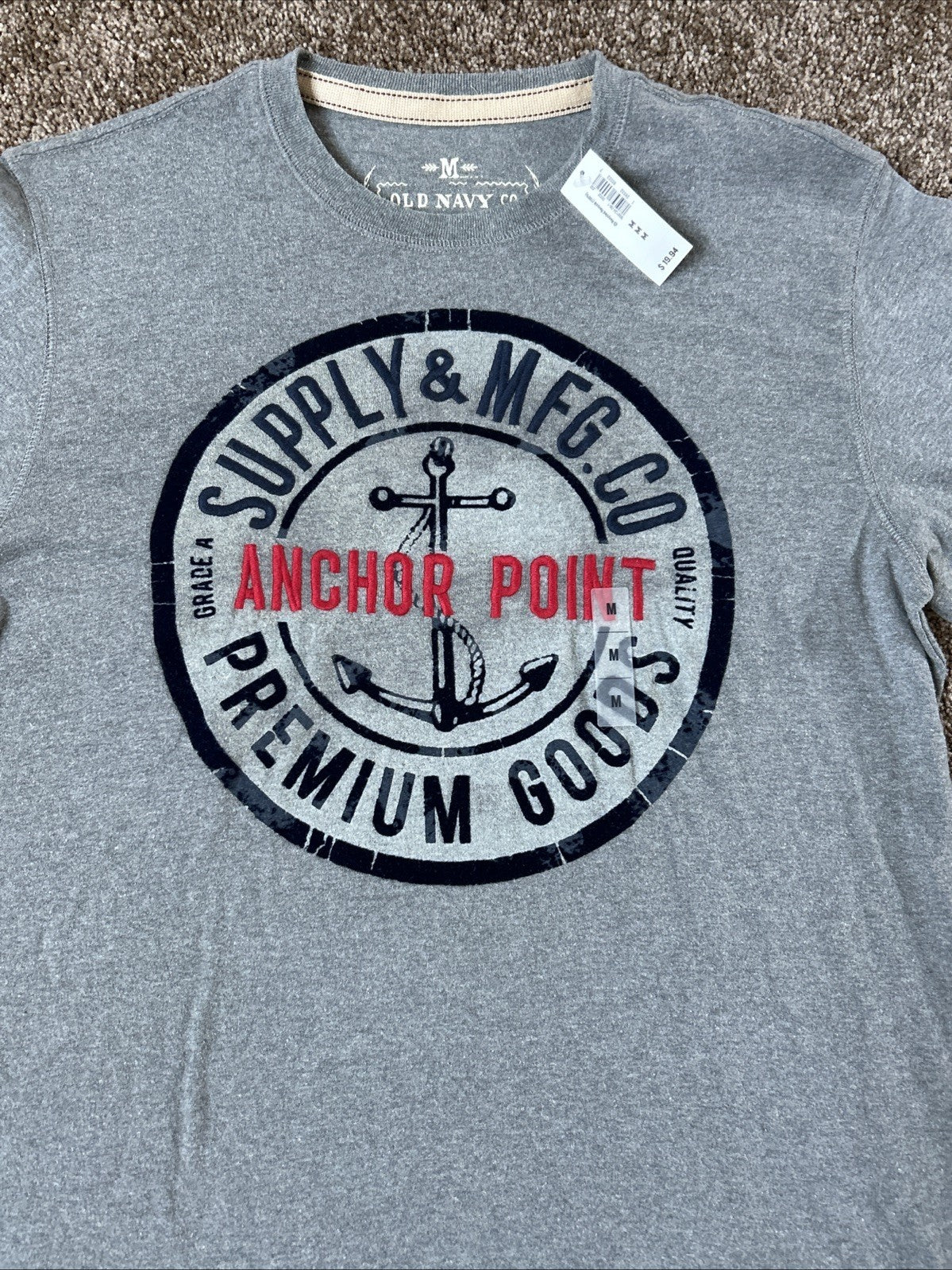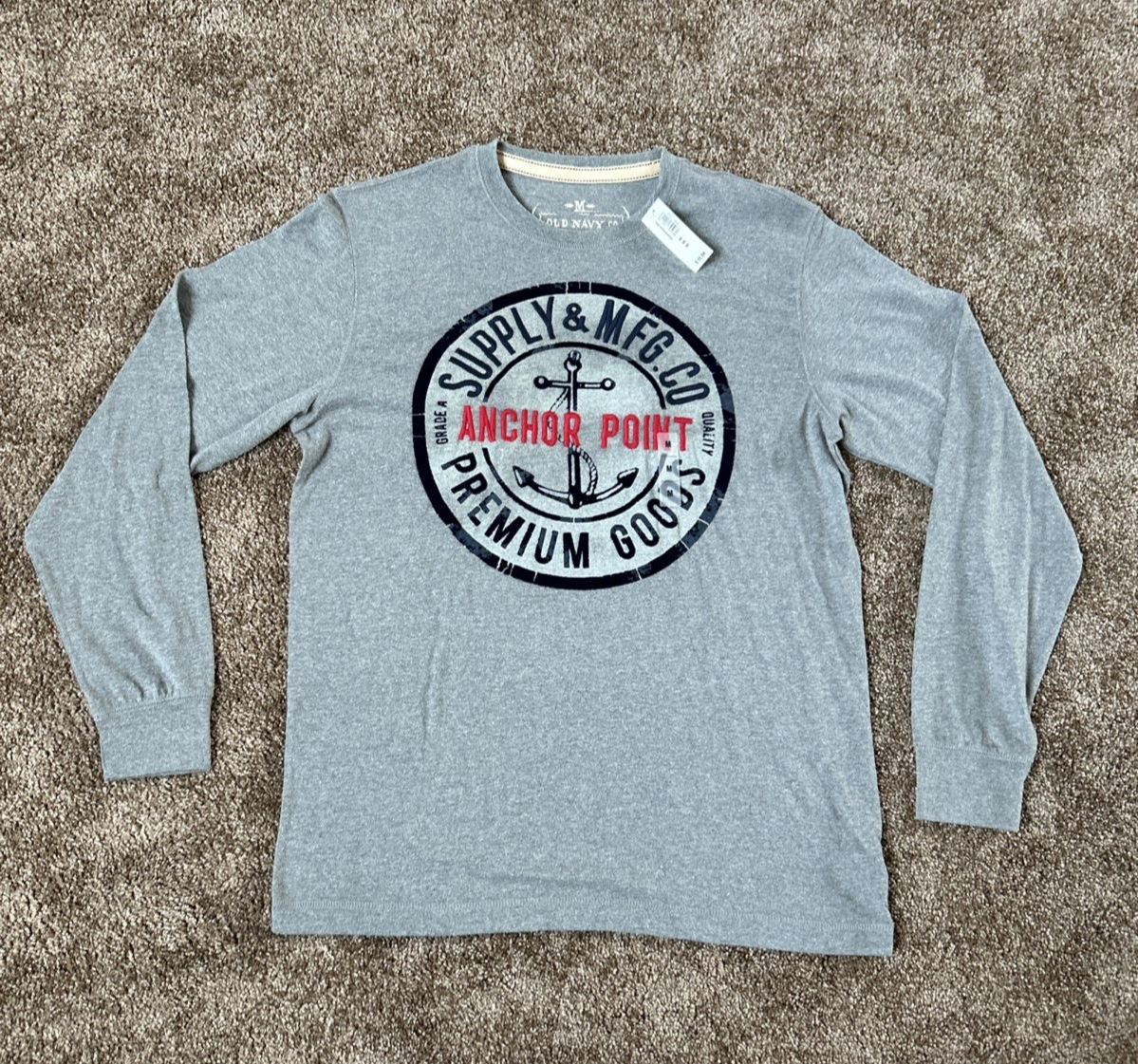 The product is a brand new with tag Old Navy gray long sleeve t-shirt in size medium for men. Made for a regular fit, this t-shirt is perfect for casual wear and can be easily paired with jeans or shorts for a comfortable and stylish look. The gray color adds versatility to the shirt, making it easy to mix and match with various bottoms in any man's wardrobe.