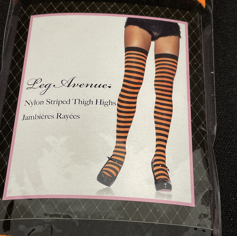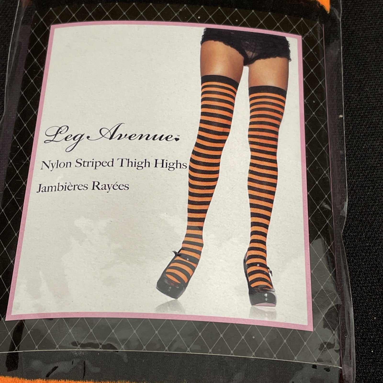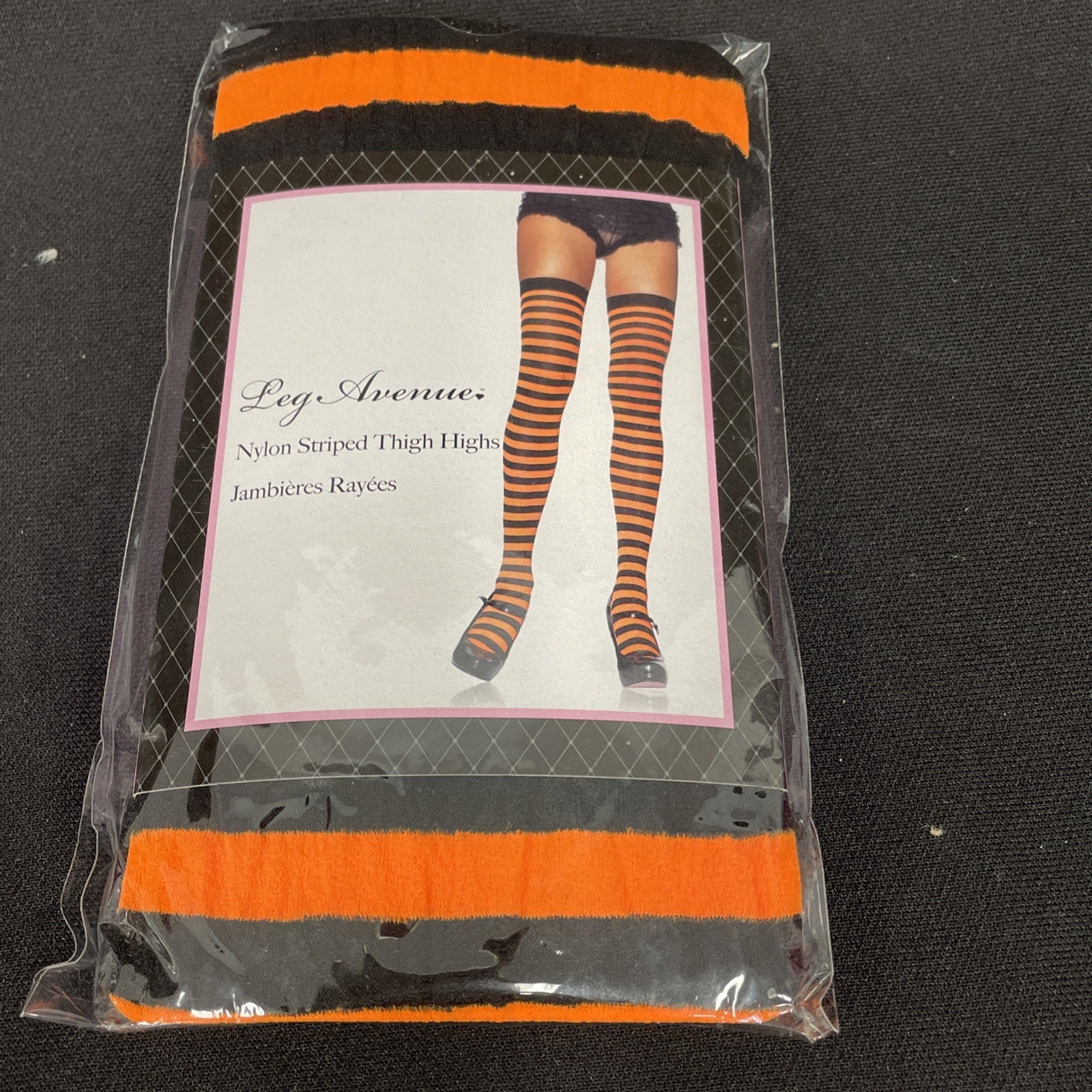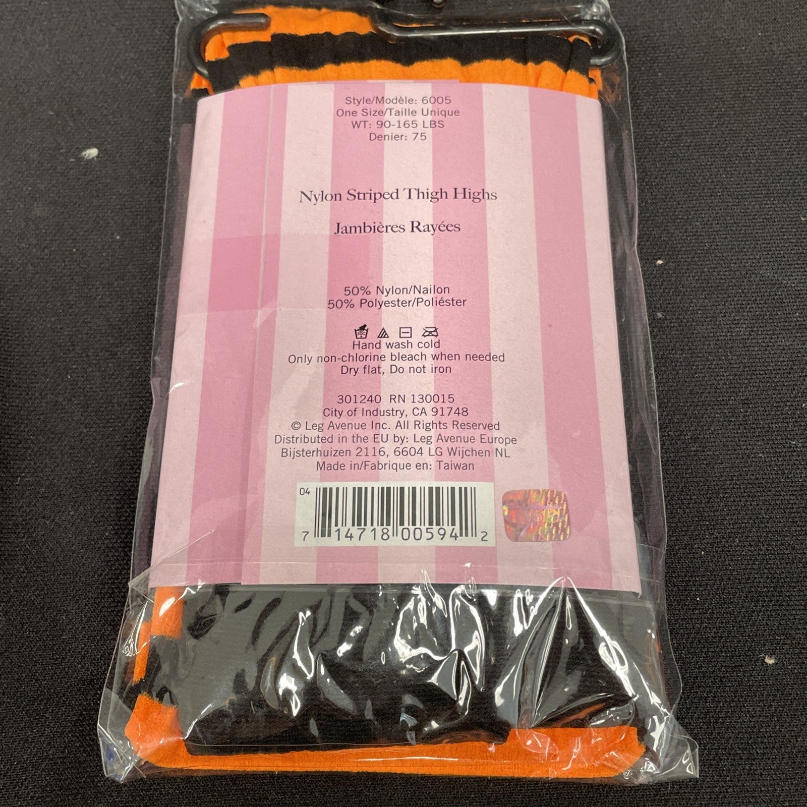 Opaque Stripe Thigh High Stocking Orange Black LEG AVENUE OSFM Costume Halloween