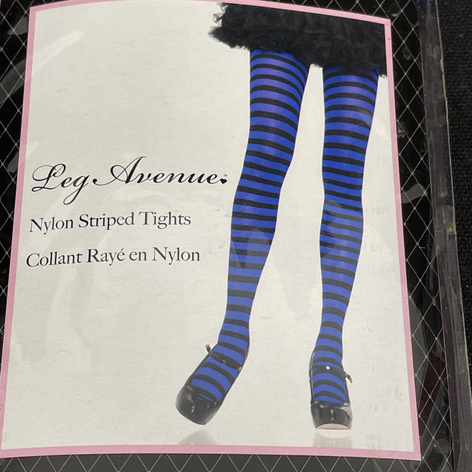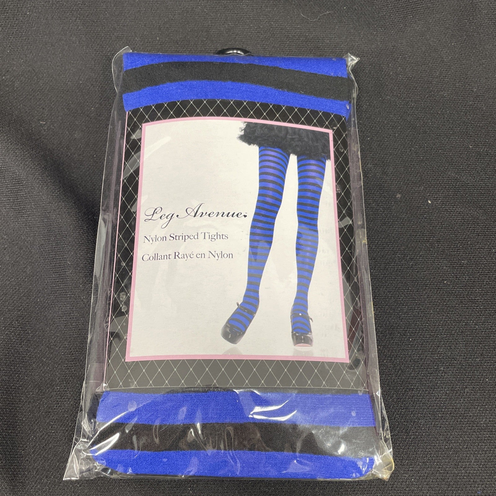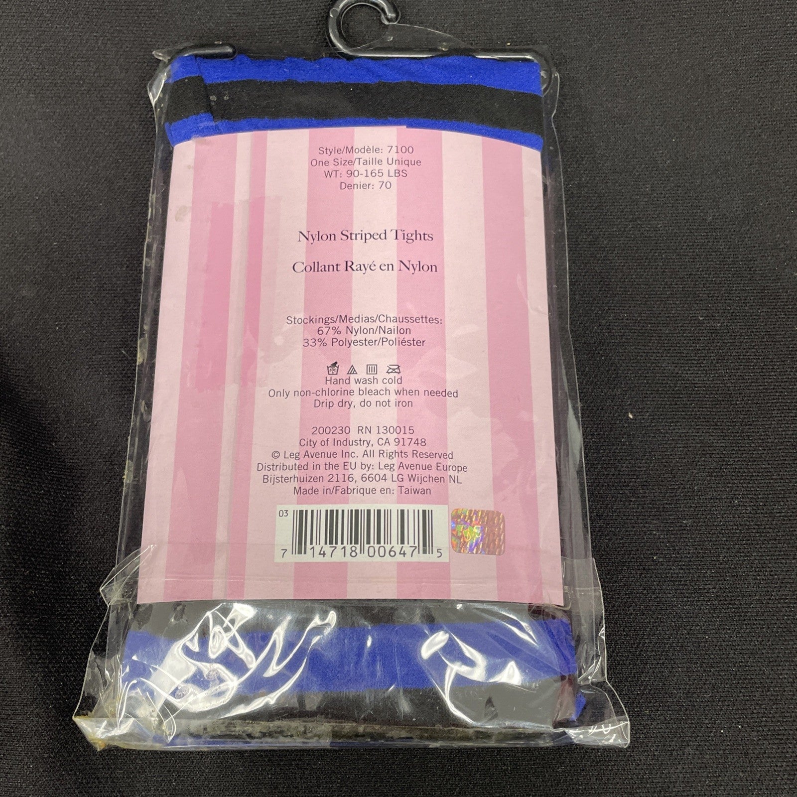 Opaque Trendy Blue & Black Striped Tights One Size By Leg Avenue