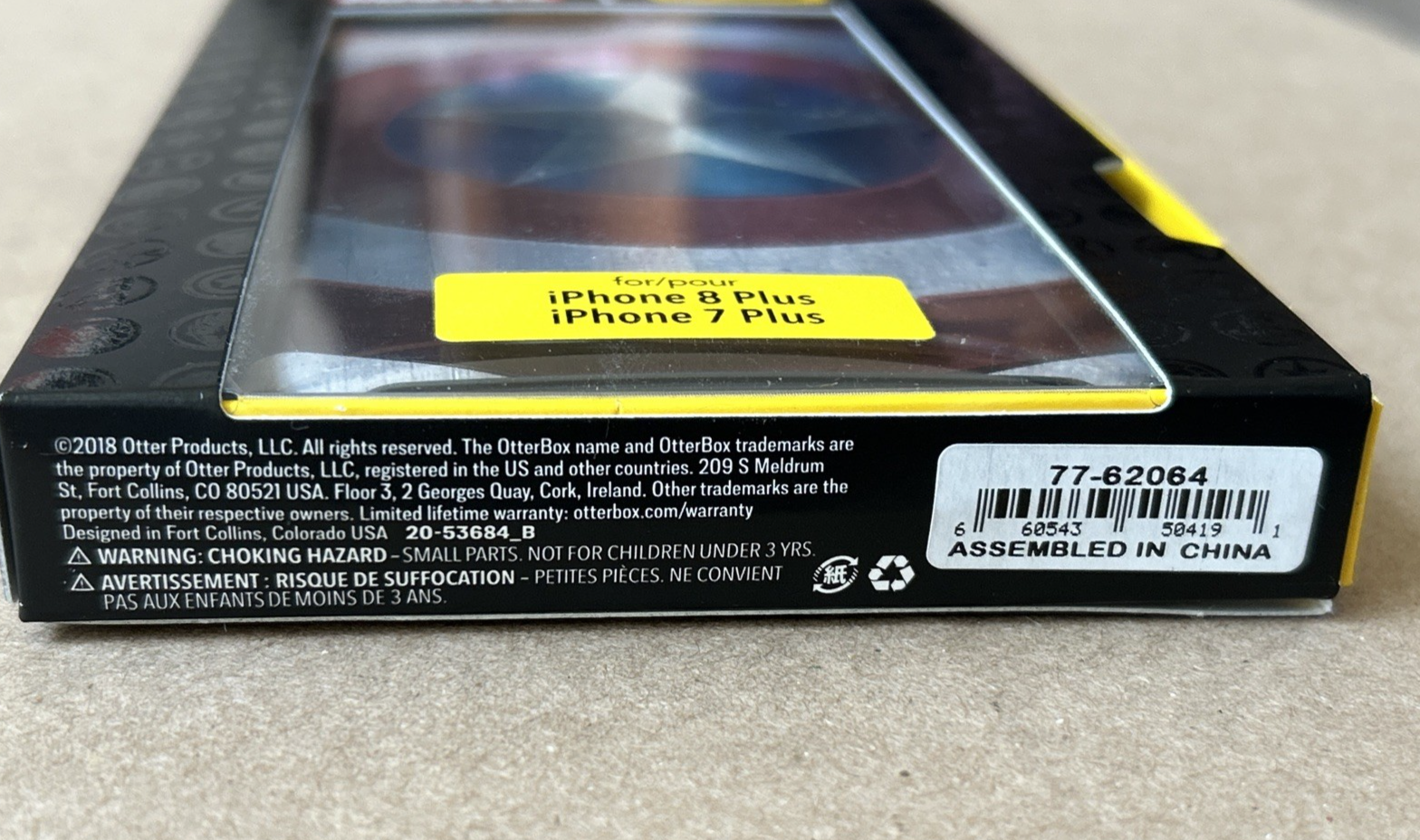 The OtterBox Captain America Apple iPhone 7/8 Plus Symmetry Series Protective Case is a stylish and durable fitted case designed for Apple iPhone 7 Plus and 8 Plus models. Made with a combination of synthetic rubber and polycarbonate materials, this glossy case features a unique Captain America design inspired by the Marvel Universe. The multicolor design adds a touch of personality to your phone while providing protection against bumps, drops, and scratches. With the trusted OtterBox brand, you can enjoy peace of mind knowing your device is safeguarded in style.