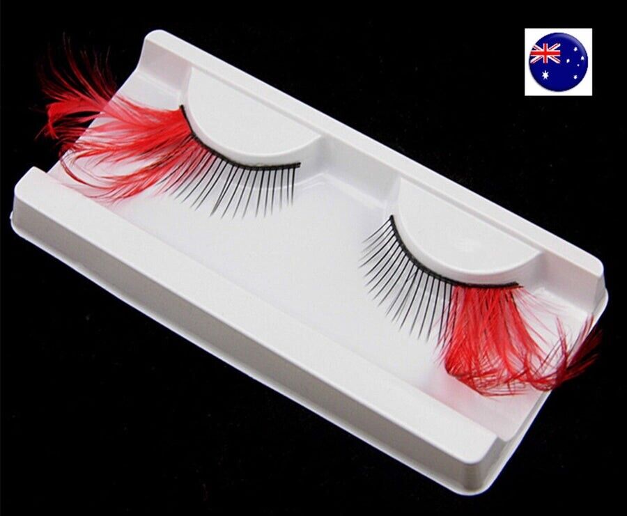 Red Top Eyelashes Black Feather By Disguise Self Adhesive Costume Accesory.