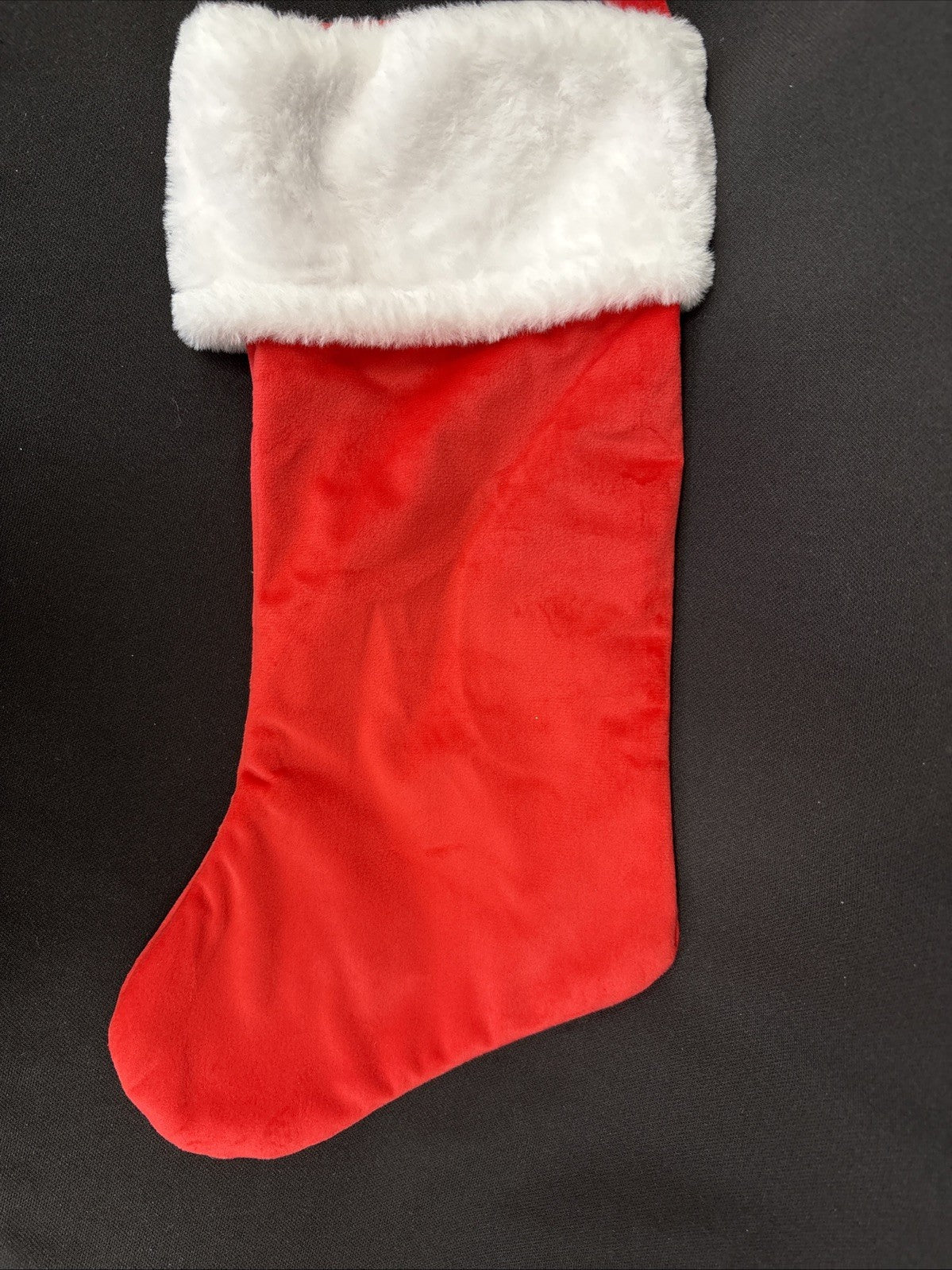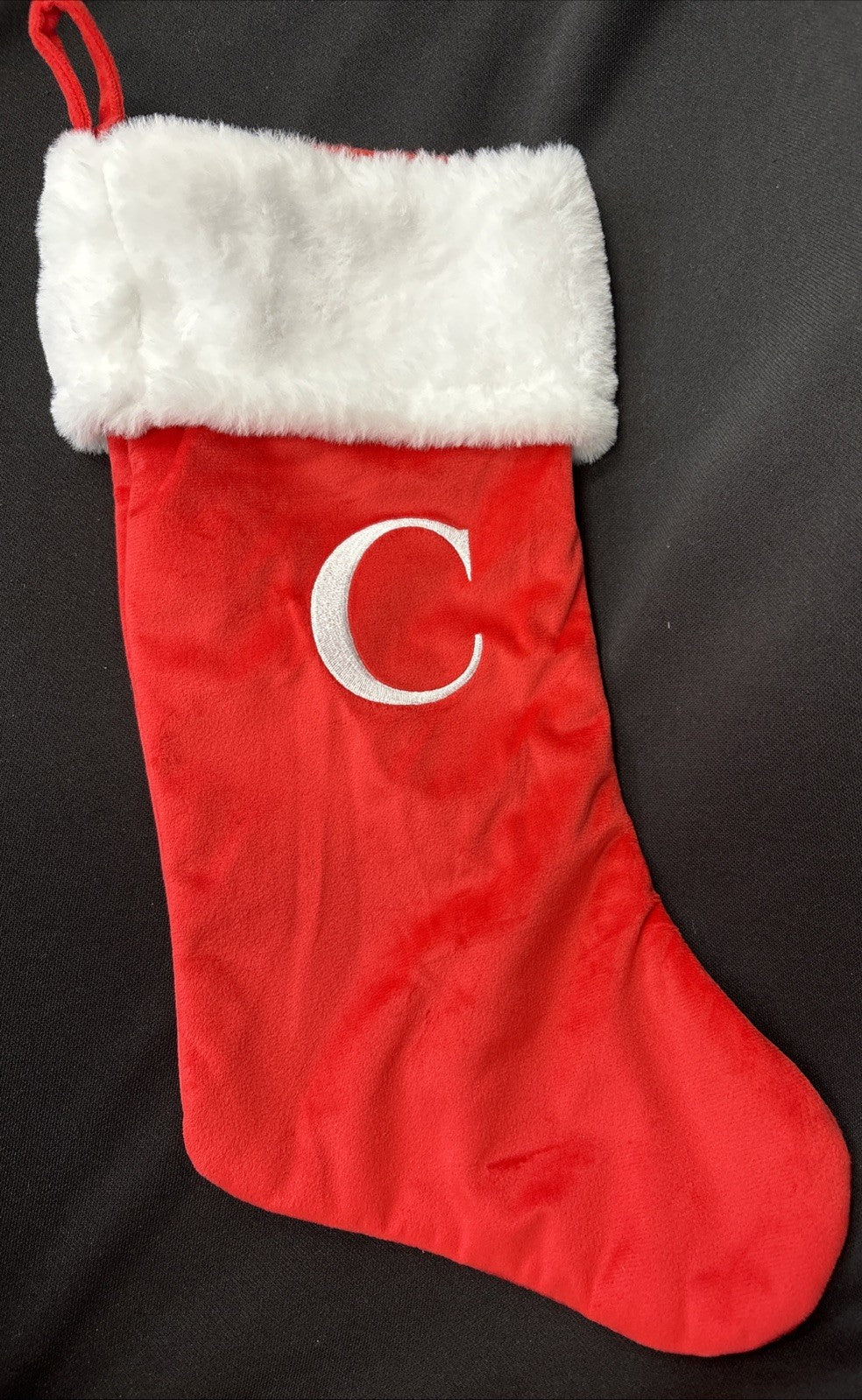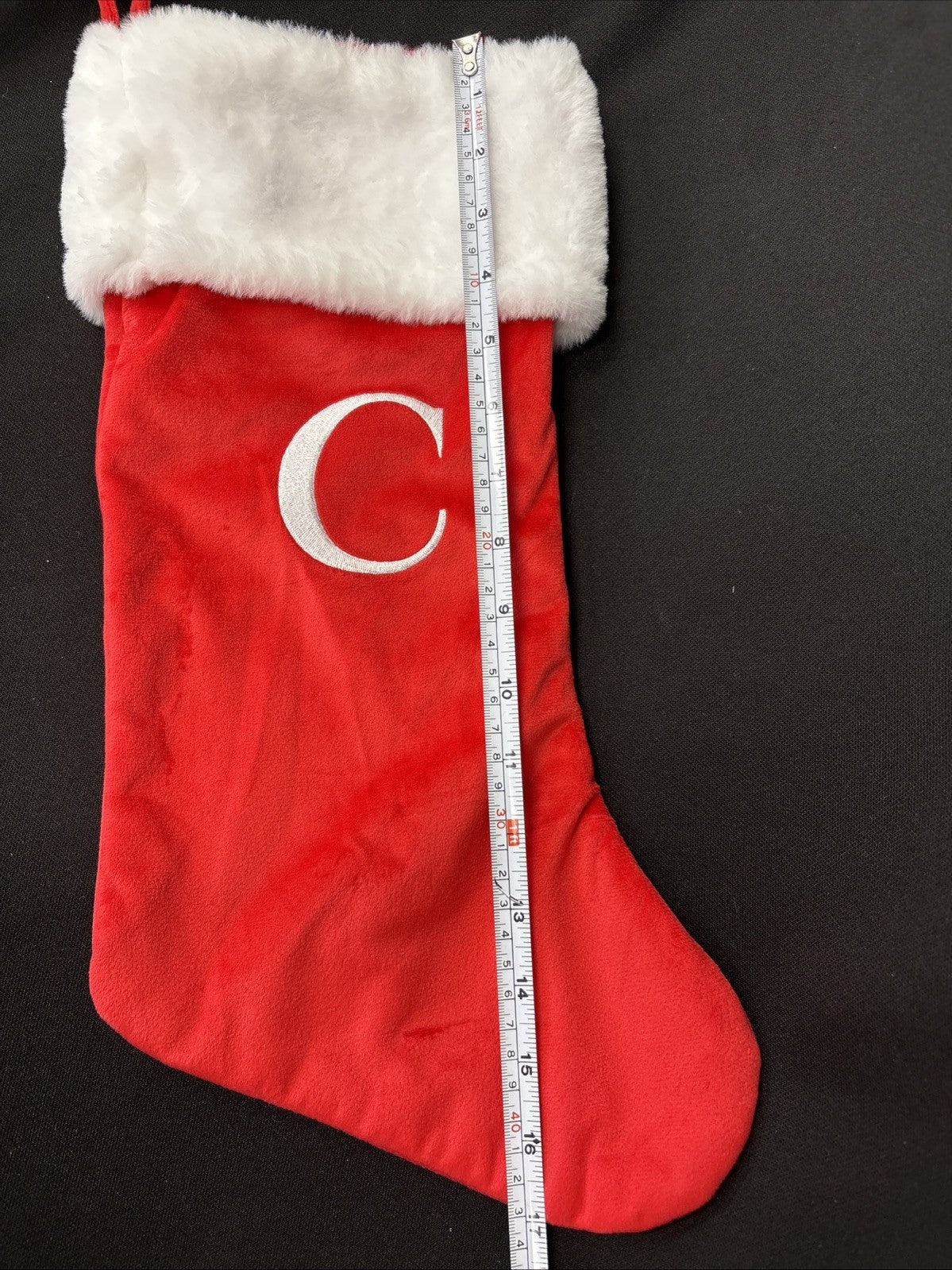 RED VELVET Initial WHITE FUR CUFF MONOGRAM C CHRISTMAS STOCKING