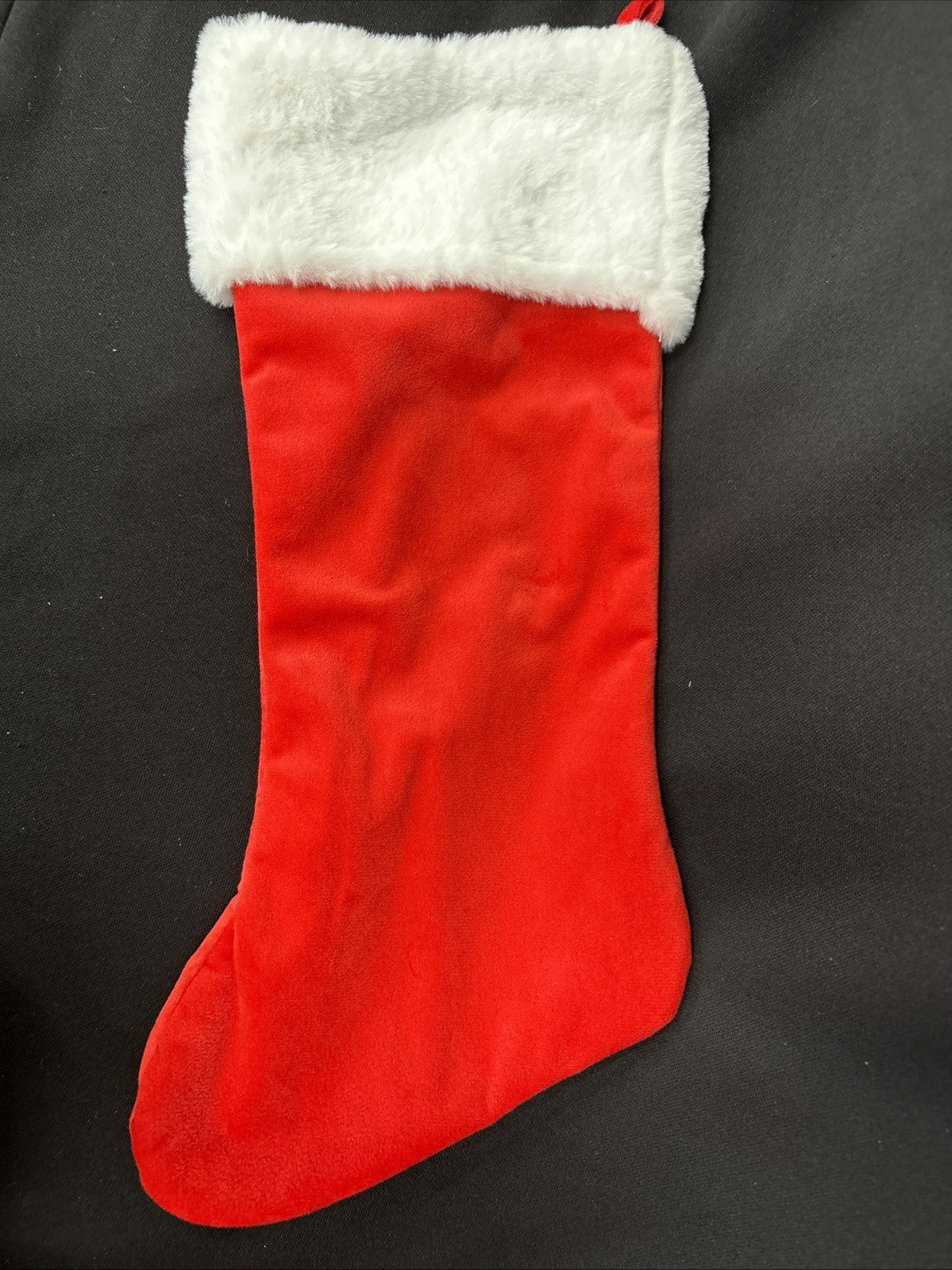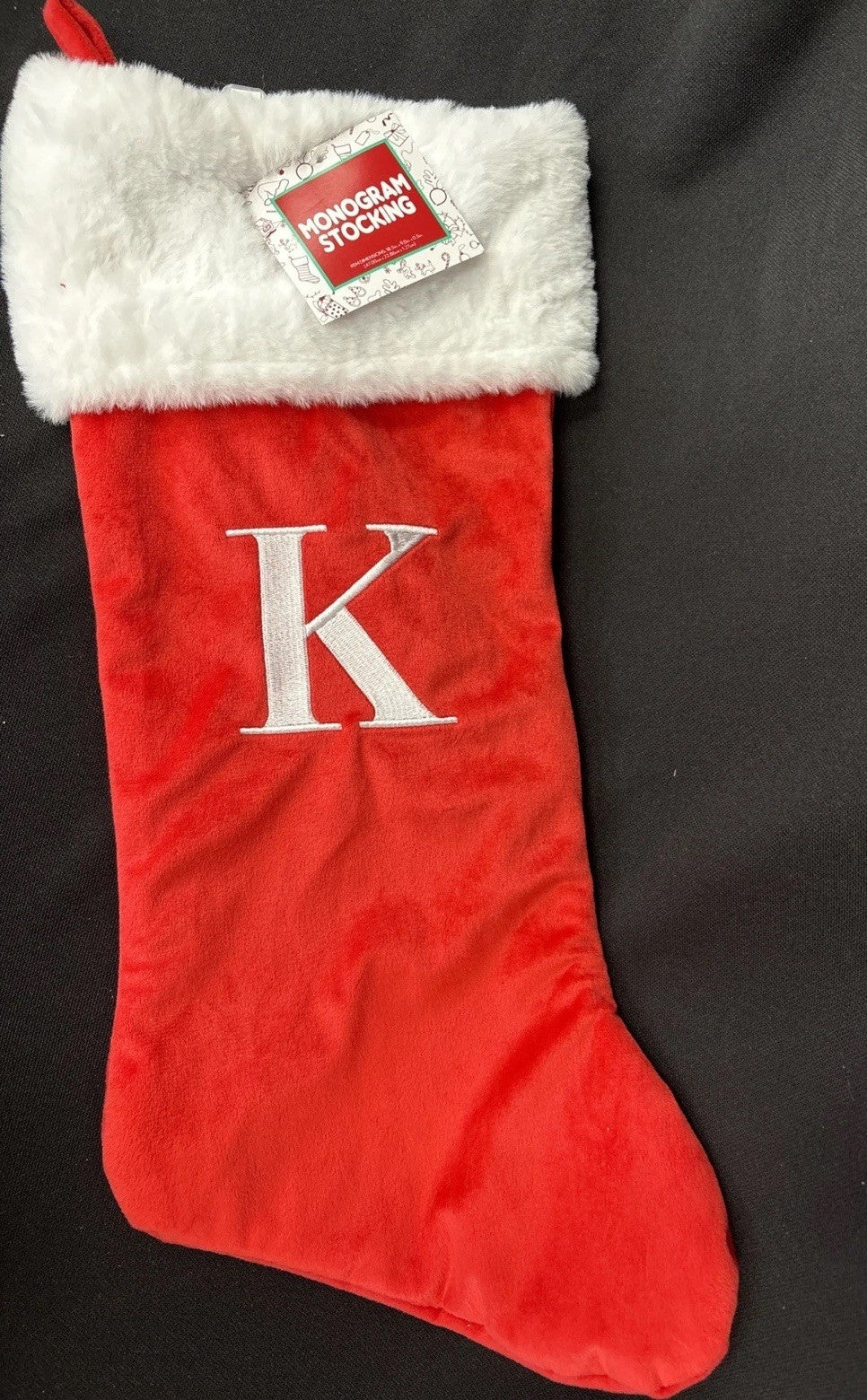 RED VELVET Initial WHITE FUR CUFF MONOGRAM K CHRISTMAS STOCKING