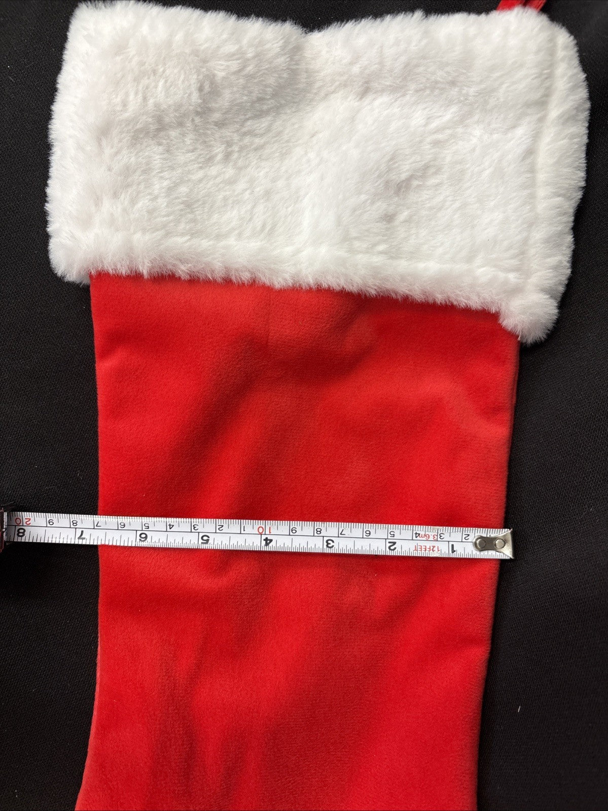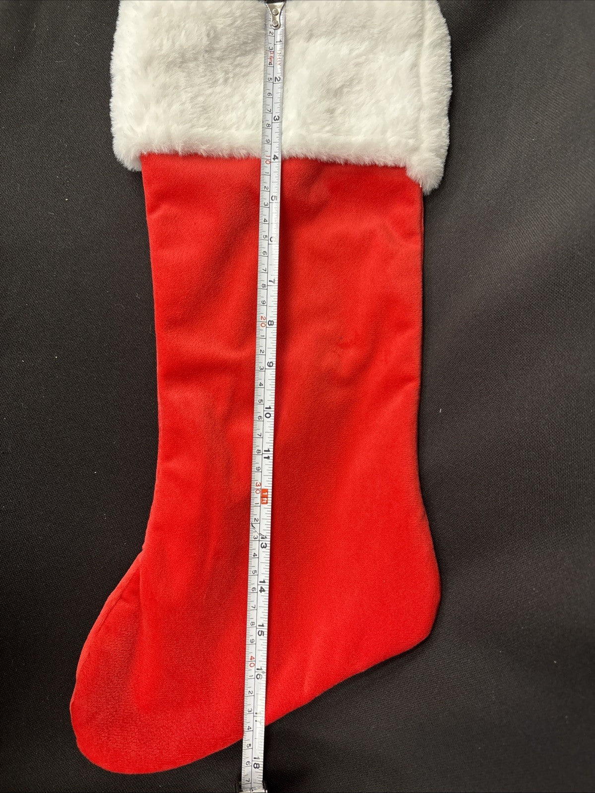 This luxurious RED VELVET Initial WHITE FUR CUFF MONOGRAM K CHRISTMAS STOCKING is perfect for adding a touch of elegance to your holiday decor. Made from velvet with embroidered embellishments and a faux fur cuff, this stocking is both stylish and festive. The monogrammed letter adds a personalized touch, while the red and white color scheme gives it a classic Christmas look. Measuring 17 inches in length and 6.5 inches in width, this stocking is sure to be a beautiful addition to your mantle or shelf.