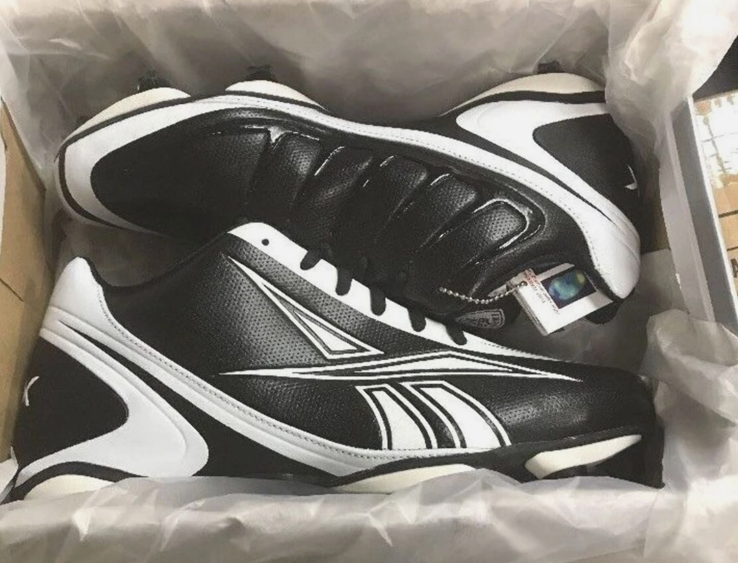 The product is a pair of Reebok NFL Burner Speed 5/8 SD3 cleats in black and white, designed specifically for football players. These new cleats, although missing the original box, are in size 10 and feature a durable construction suitable for the sport. With the Reebok brand known for quality athletic footwear, these cleats are sure to provide the performance and support needed on the football field.