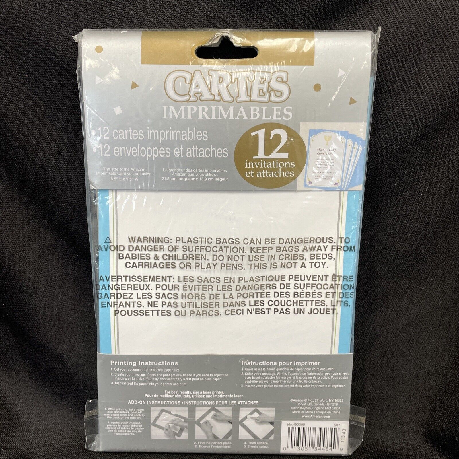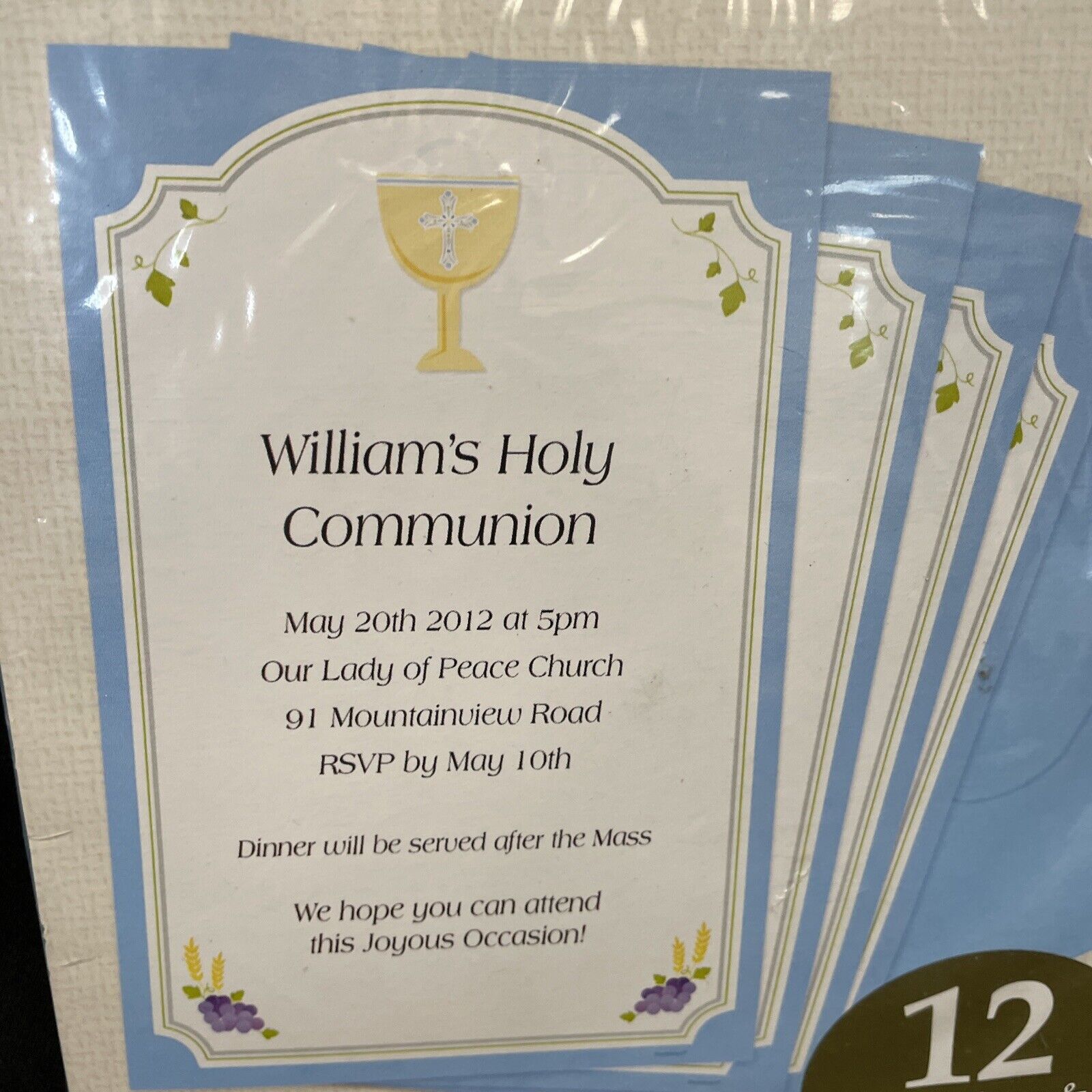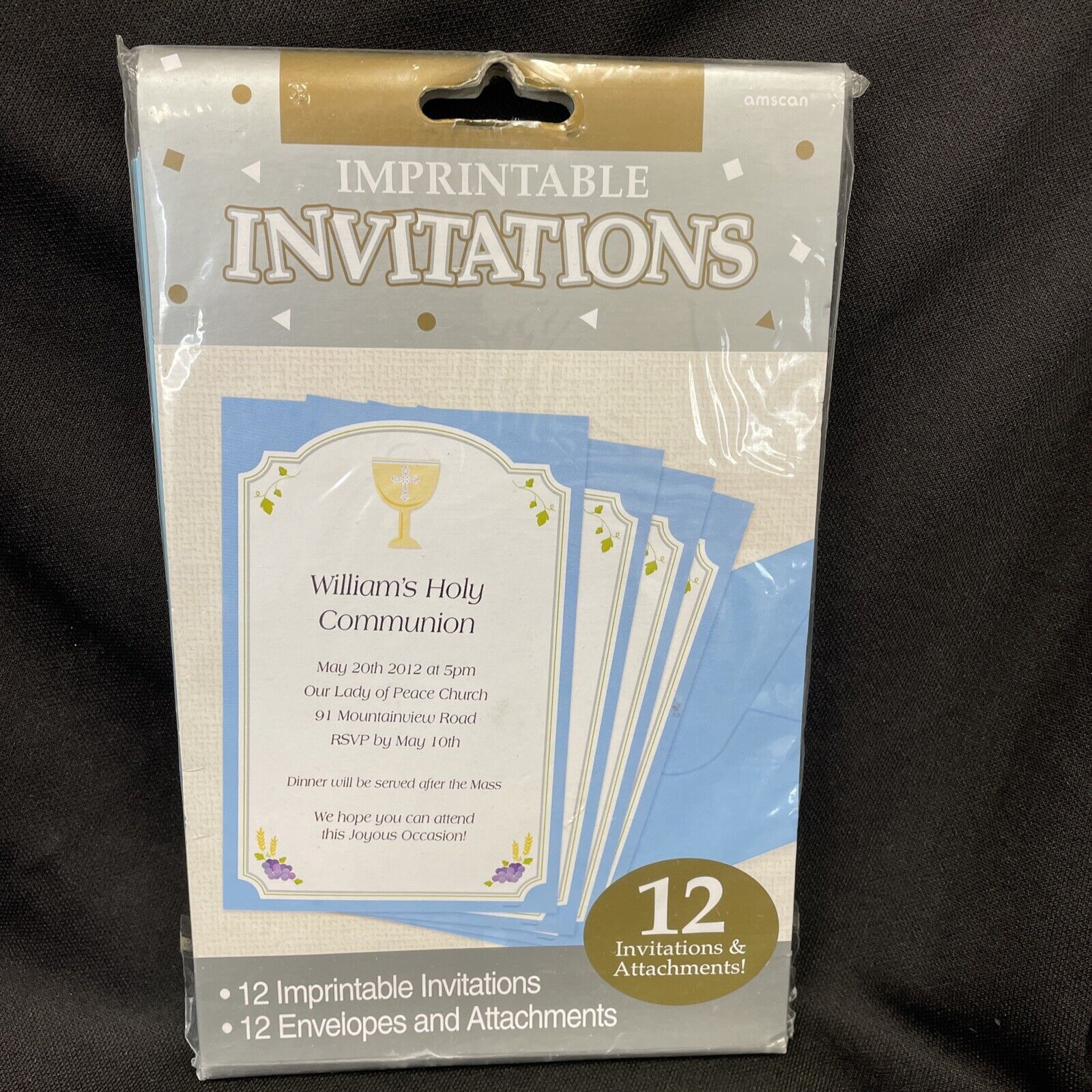 Religious First Communion Blue Imprintable Invitatons W/ Envelopes (12ct).