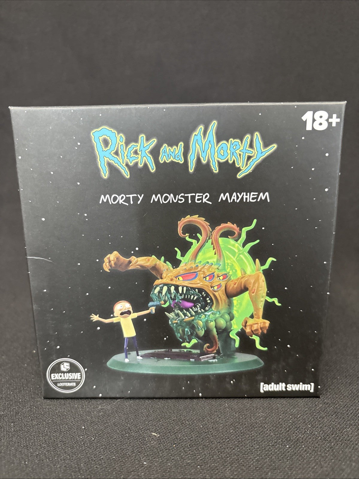 The Rick and Morty Morty Monster Mayhem Figure is a Loot Crate exclusive action figure from the popular TV series "Rick and Morty." This collectible features characters Morty, Monster, and Rick in a dynamic pose, perfect for fans of the show. The figure is an original licensed reproduction, released in 2018, and comes with exclusive features that make it a must-have for any enthusiast of the series. Overall, this figure captures the essence of the beloved TV show and is a valuable addition to any collection.