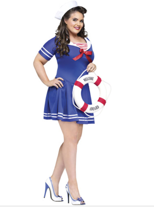 Dress up in this charming sailor costume dress from Fun World, perfect for any occasion. The dress comes in a beautiful shade of blue and is designed to fit plus size women 16W-20W. The A-line style and short dress length make it a flattering choice for any figure comes with a swabbie hat