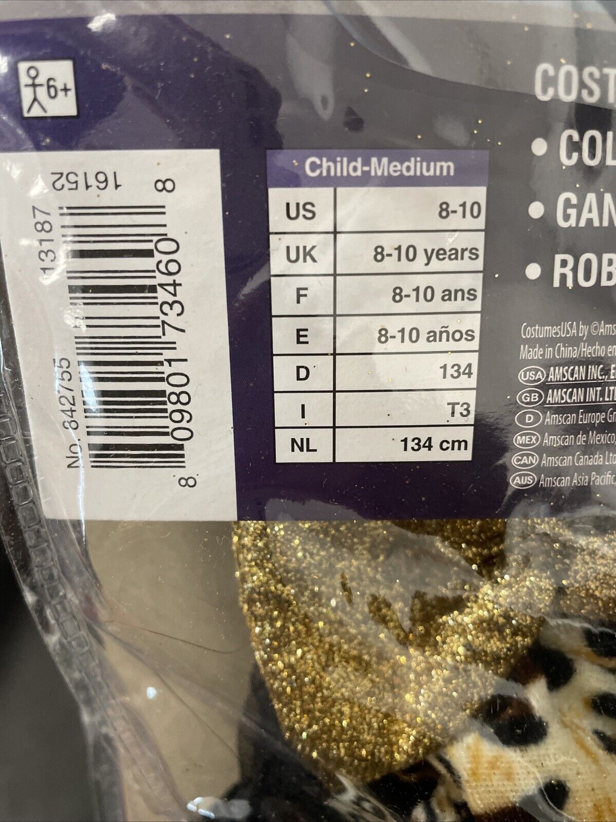 Get ready for Halloween with this amazing Amscan child costume in size medium. The colorful and fun multi-color design includes footless tights, fingerless gloves, dress with attached tail & hood