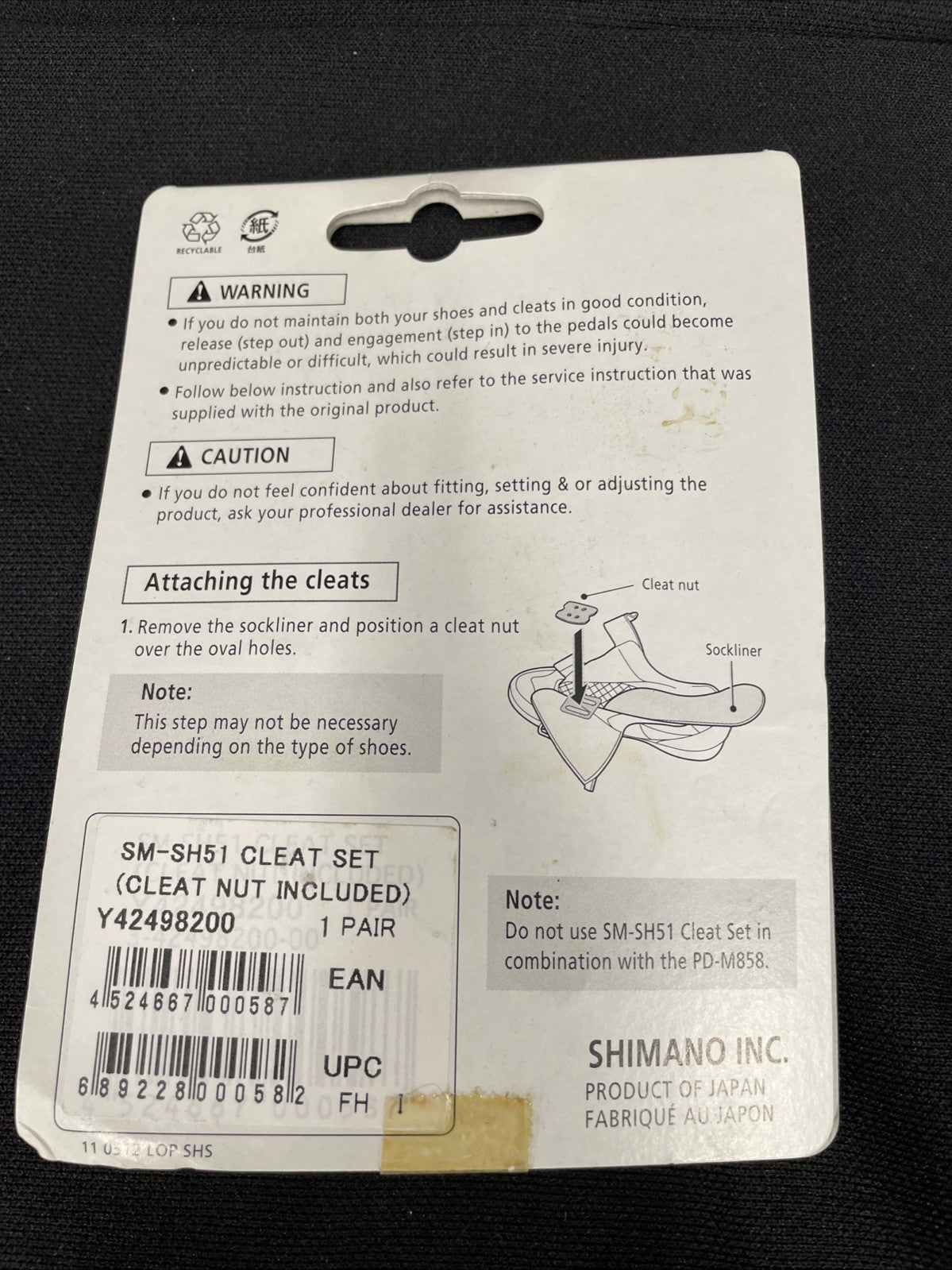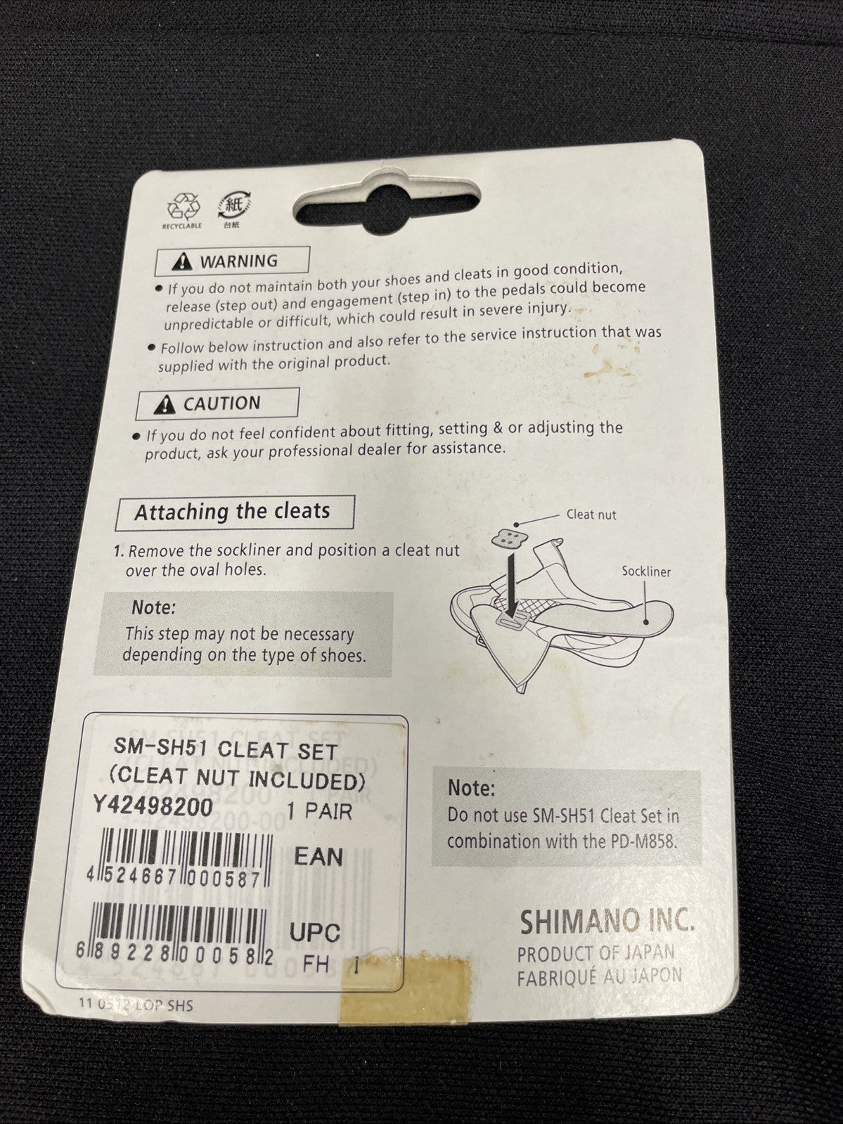 Shimano SPD SMSH51 SingleDirectional Release Cleats With Cleat Plate Nuts New
