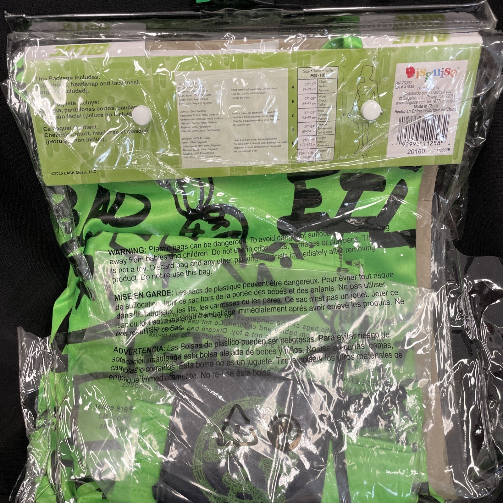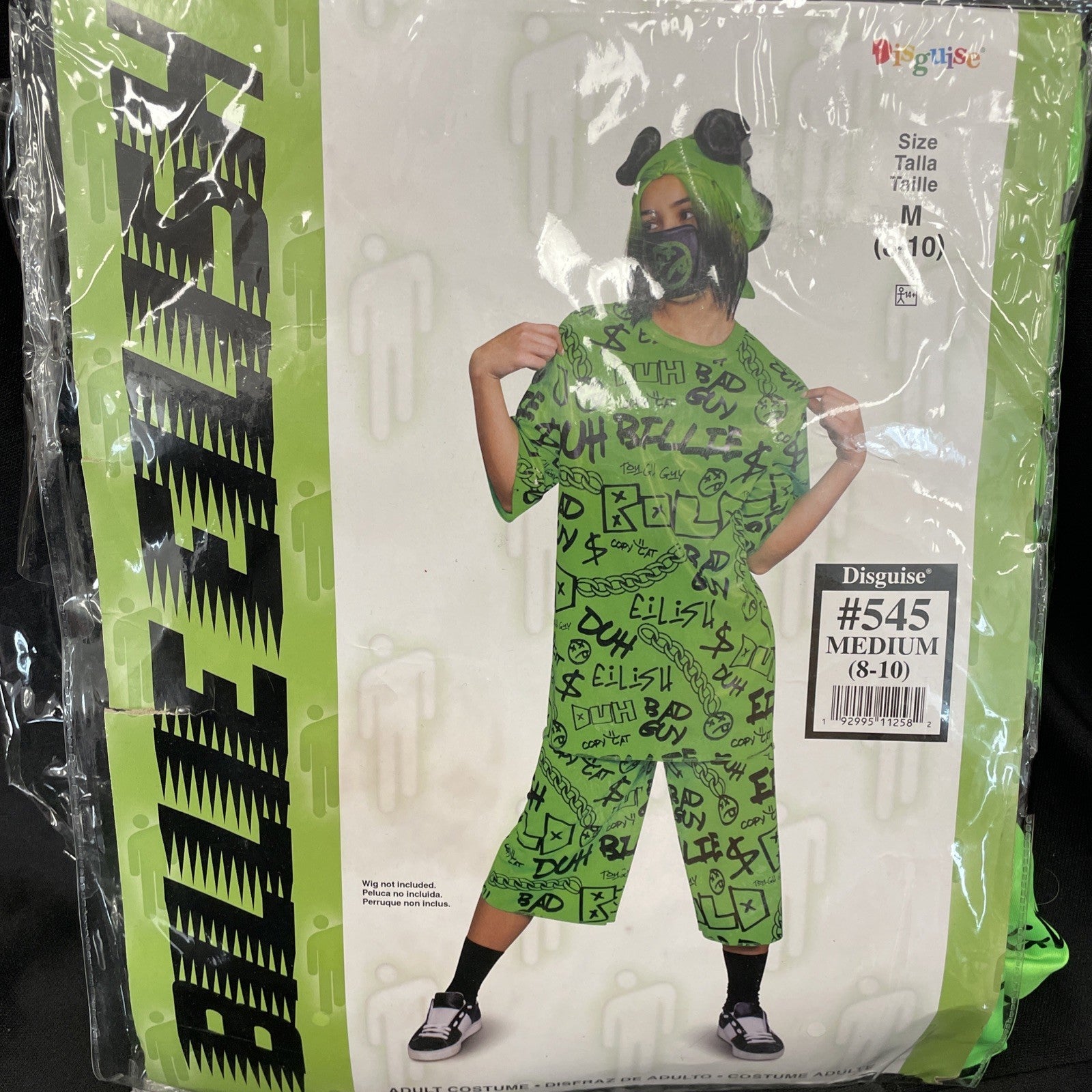 This Singer Billie Eilish green two-piece costume in adult medium size, designed by Disguise, is a perfect choice for those looking to dress up as the celebrity singer. The outfit captures the style and theme of Billie Eilish, making it a standout choice for fans and enthusiasts. With its vibrant green color and complete outfit design, this costume is sure to make a statement at any event, whether it be a party, concert, or theatrical performance.