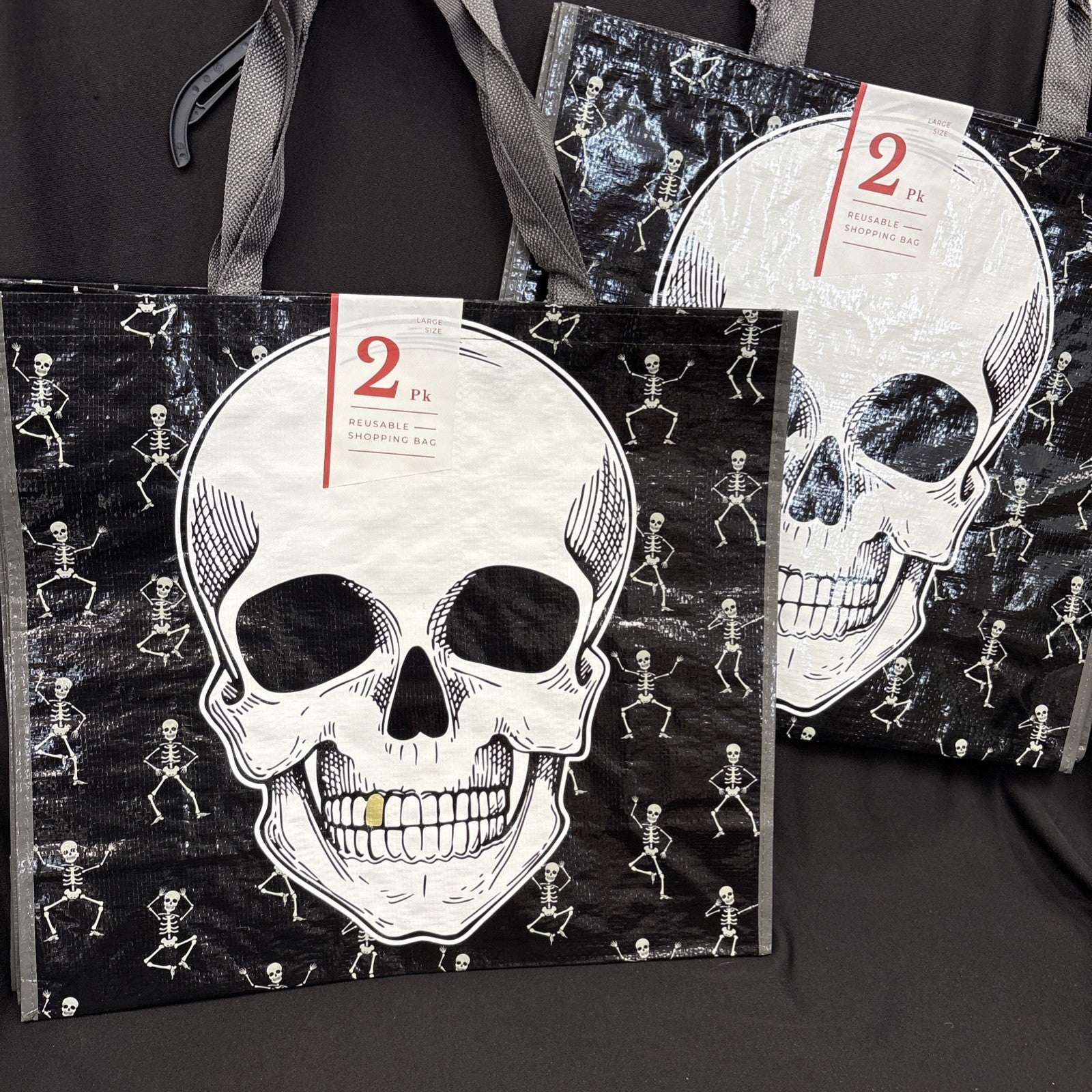 Skull Pattern Large Reusable Shopping Bag 2x 2Pack (4Bags)