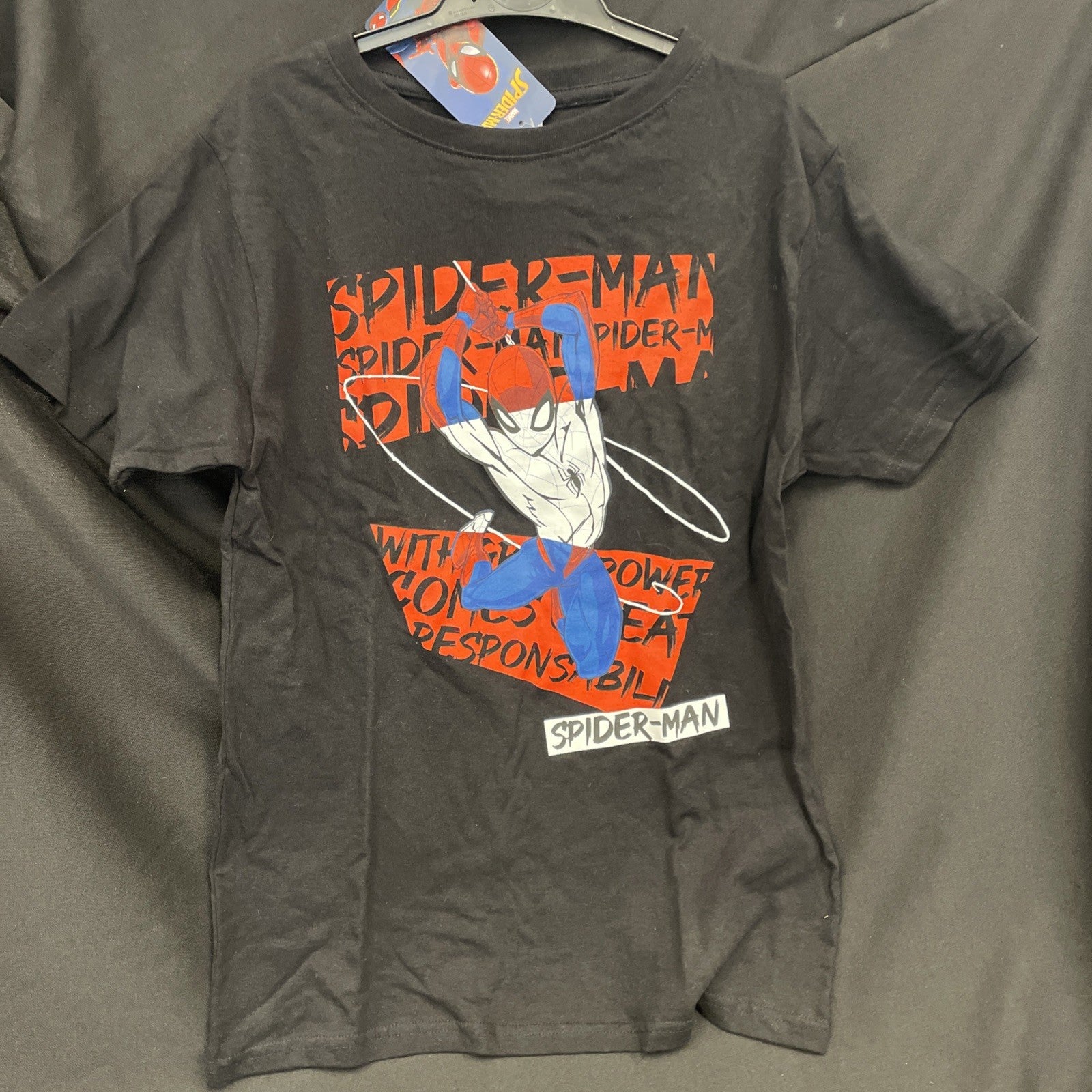 Spiderman Swinging Kids Size 18 Black Cotton Graphic Tshirt