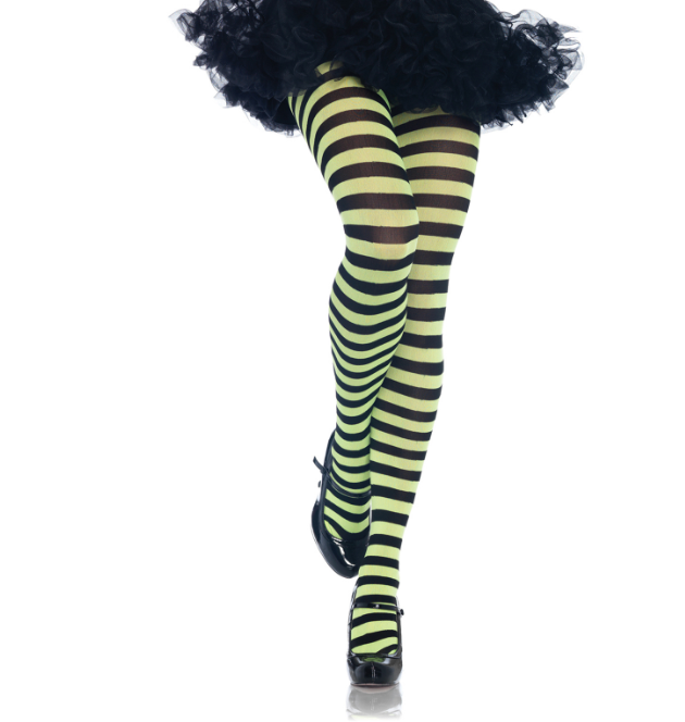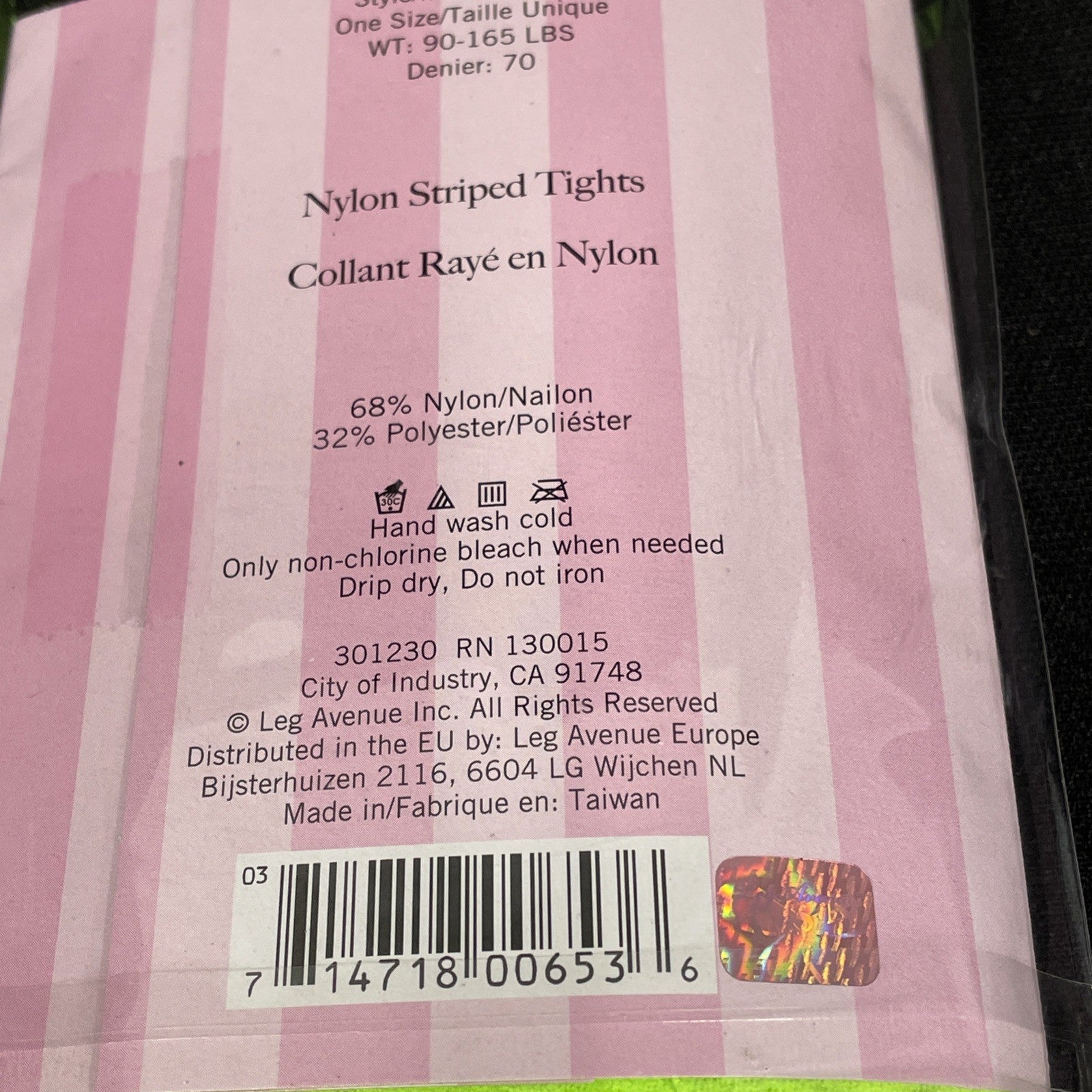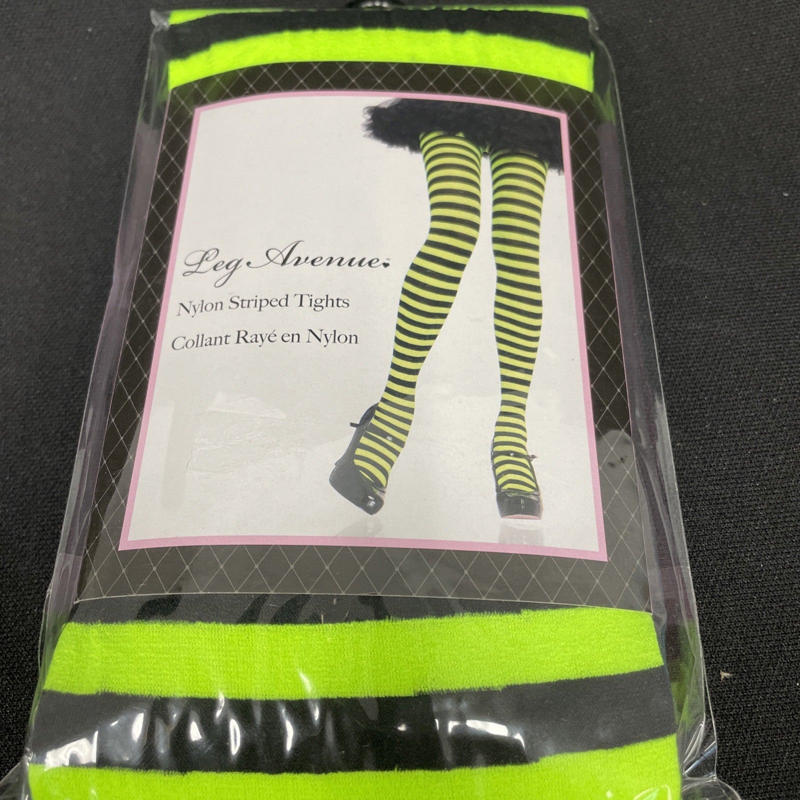 Stripe Tights Bright Green Black LEG AVENUE OSFM (90 165 lbs)