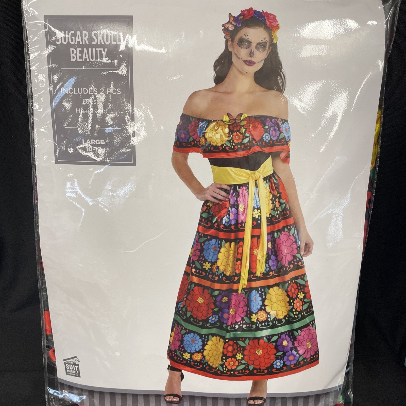 Get ready for Halloween with this beautiful floral dress with a matching headband. This multicolor dress is perfect for adults in size Large (10-12) looking for a unique and stylish costume. The dress and headband set is from Amscan, a well-known brand in party supplies, and is ideal for any Halloween occasion.