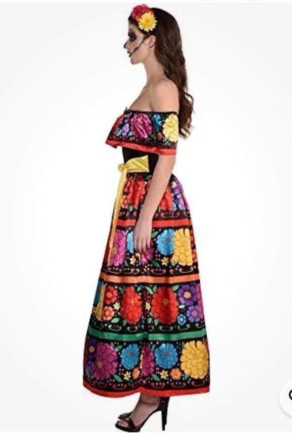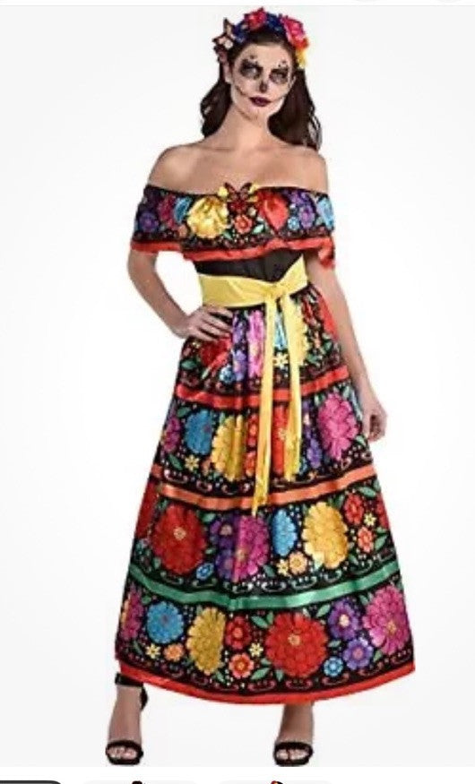 Sugar Skull Beauty Floral Dress & Headband - Adult (Large 10-12)