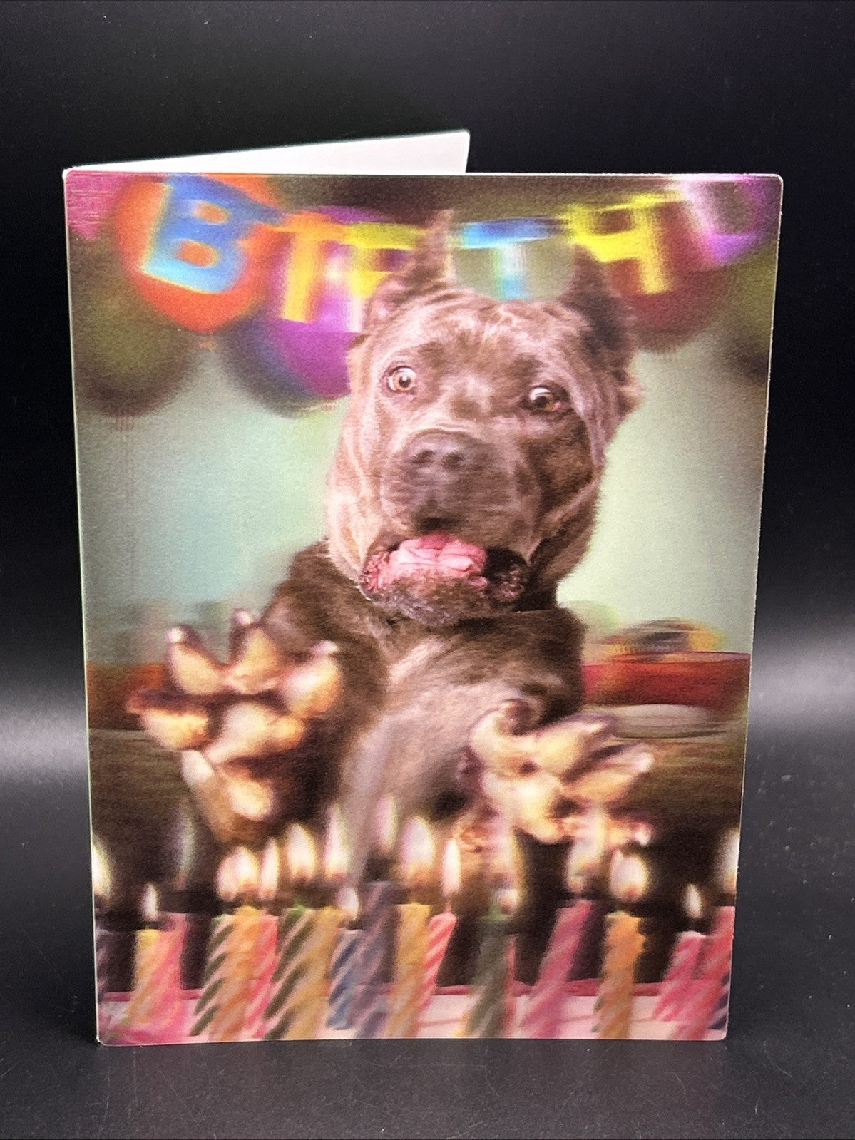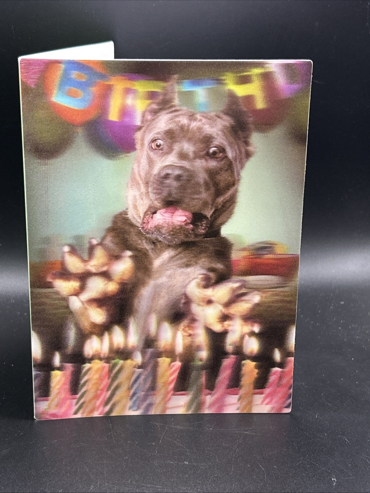 Surprised Dog Birthday Cake Lenticular Motion Greeting Card w/Envelope