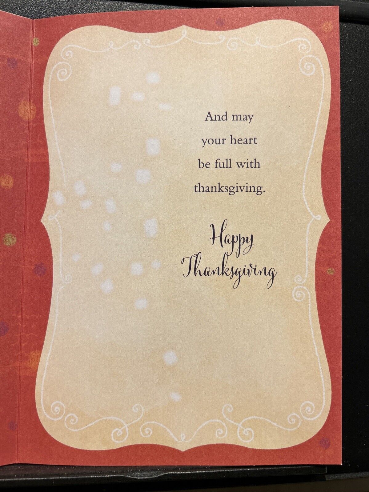 Crafted by Designer Greeting, this Thanksgiving card is a wonderful way to express your gratitude and warm wishes to friends and family. It features a beautifully designed exterior, complete with a matching envelope to make your gesture even more personalized.