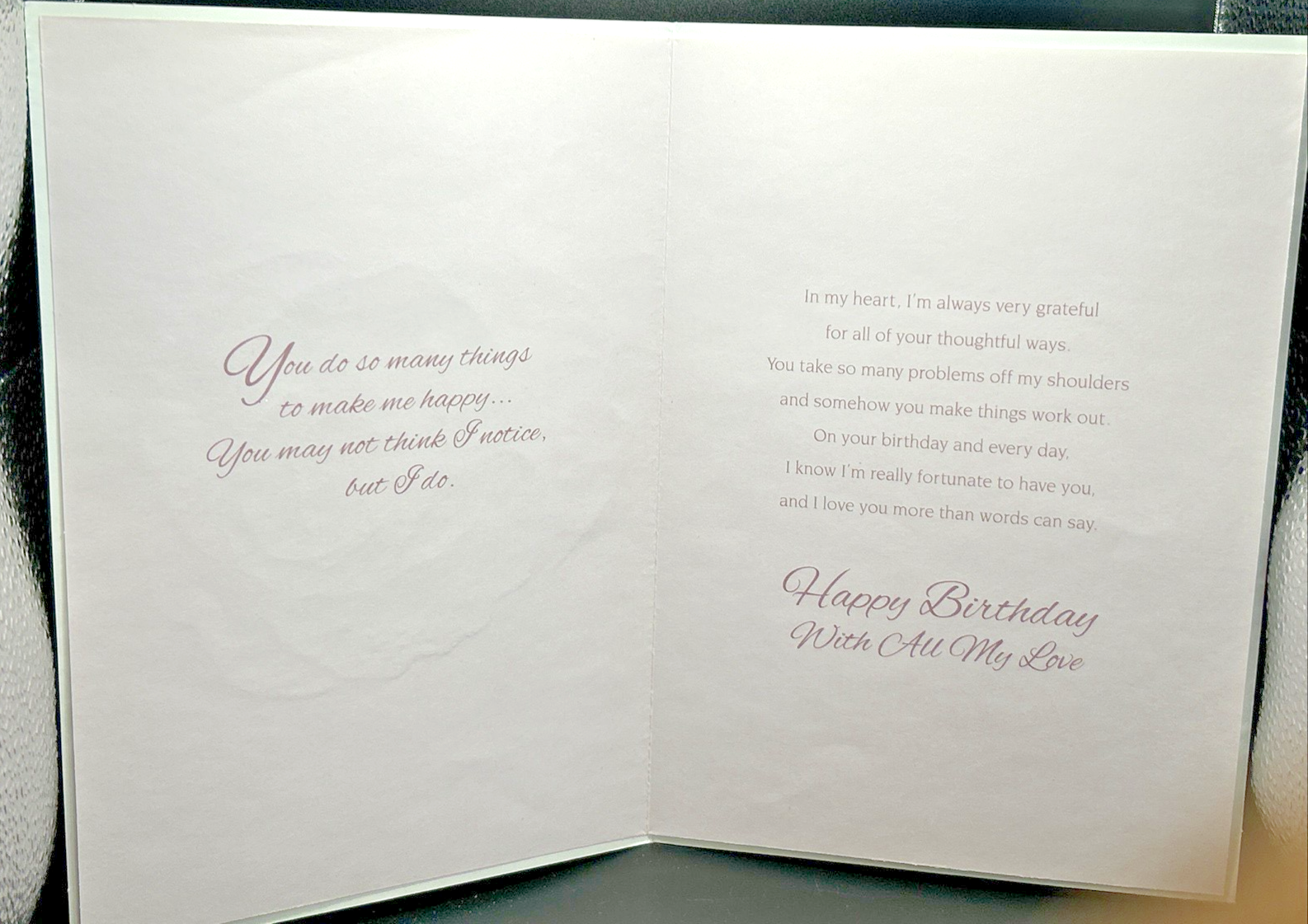Inside, the greeting card features a spacious, blank space waiting for your personalized message. Whether it's a heartfelt letter, a cozy photo, or a treasured memento, this card provides a canvas for your expression of love and appreciation. Make every birthday a memorable one with this exquisite blend of sentiment and artistry.