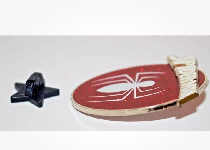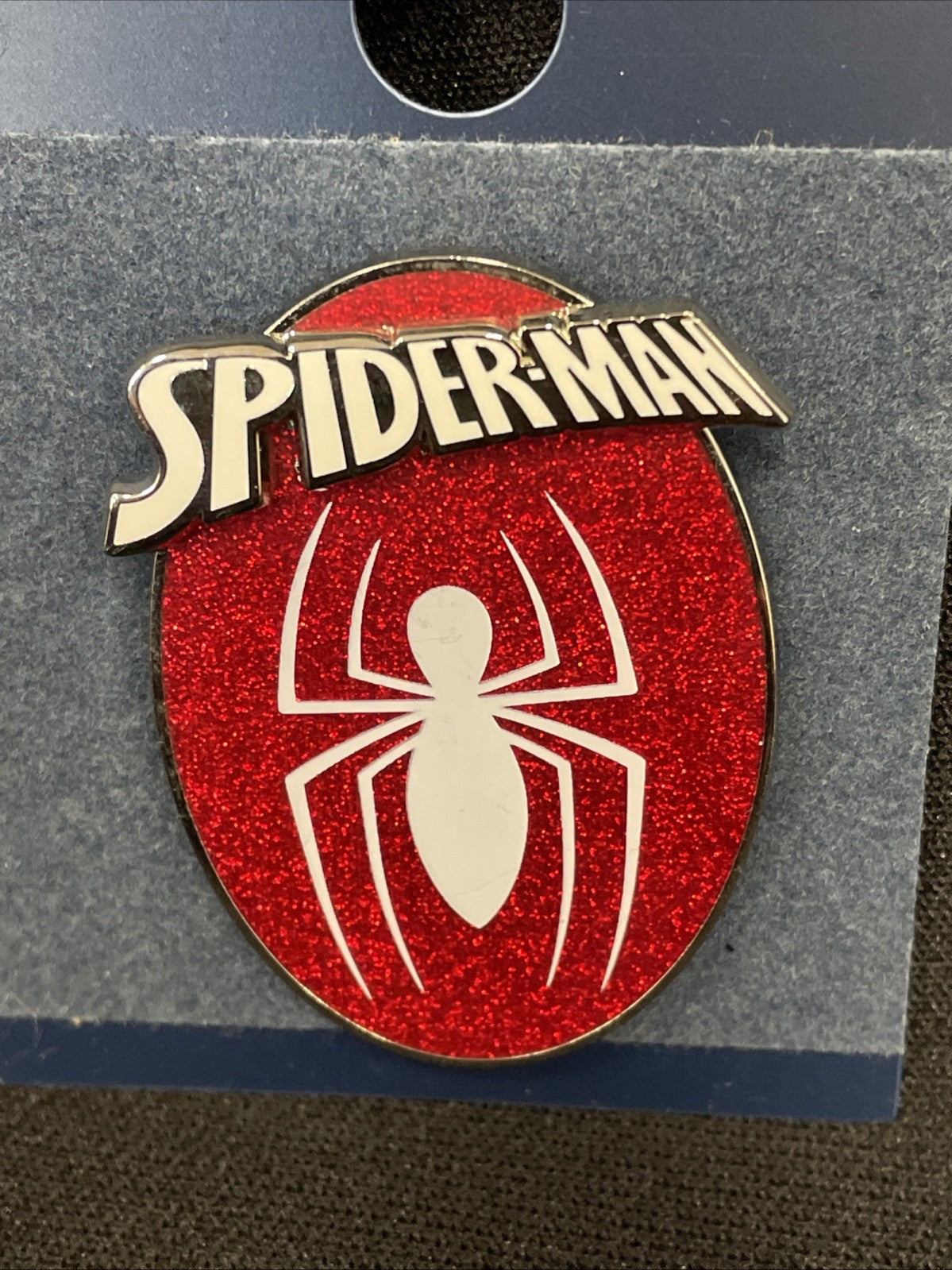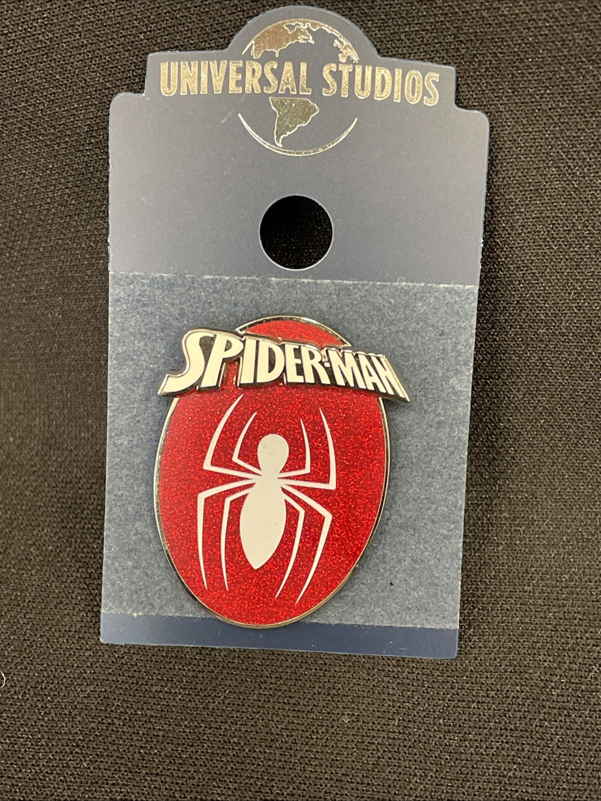 UNIVERSAL STUDIOS MARVEL SPIDERMAN LOGO WHITE SPIDER ON RED OVAL PIN NOC